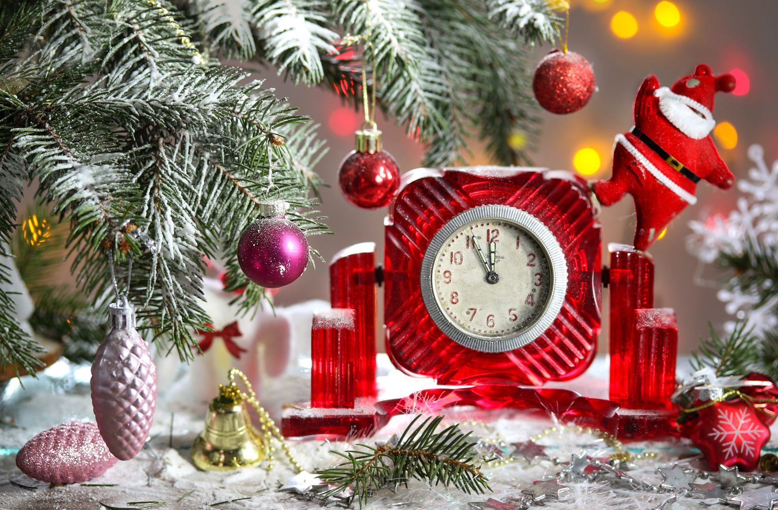 натюрморт часы, новый год, ель, игрушки, Шруб (Беляева) Татьяна
