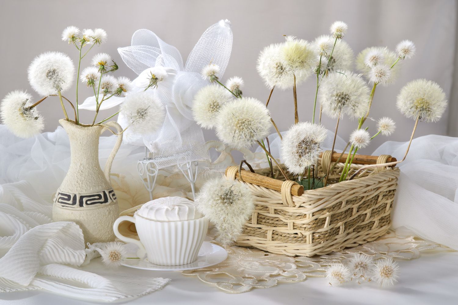 нвтюрморт, цветы, одуванчики, ваза, салфетка, Шруб (Беляева) Татьяна