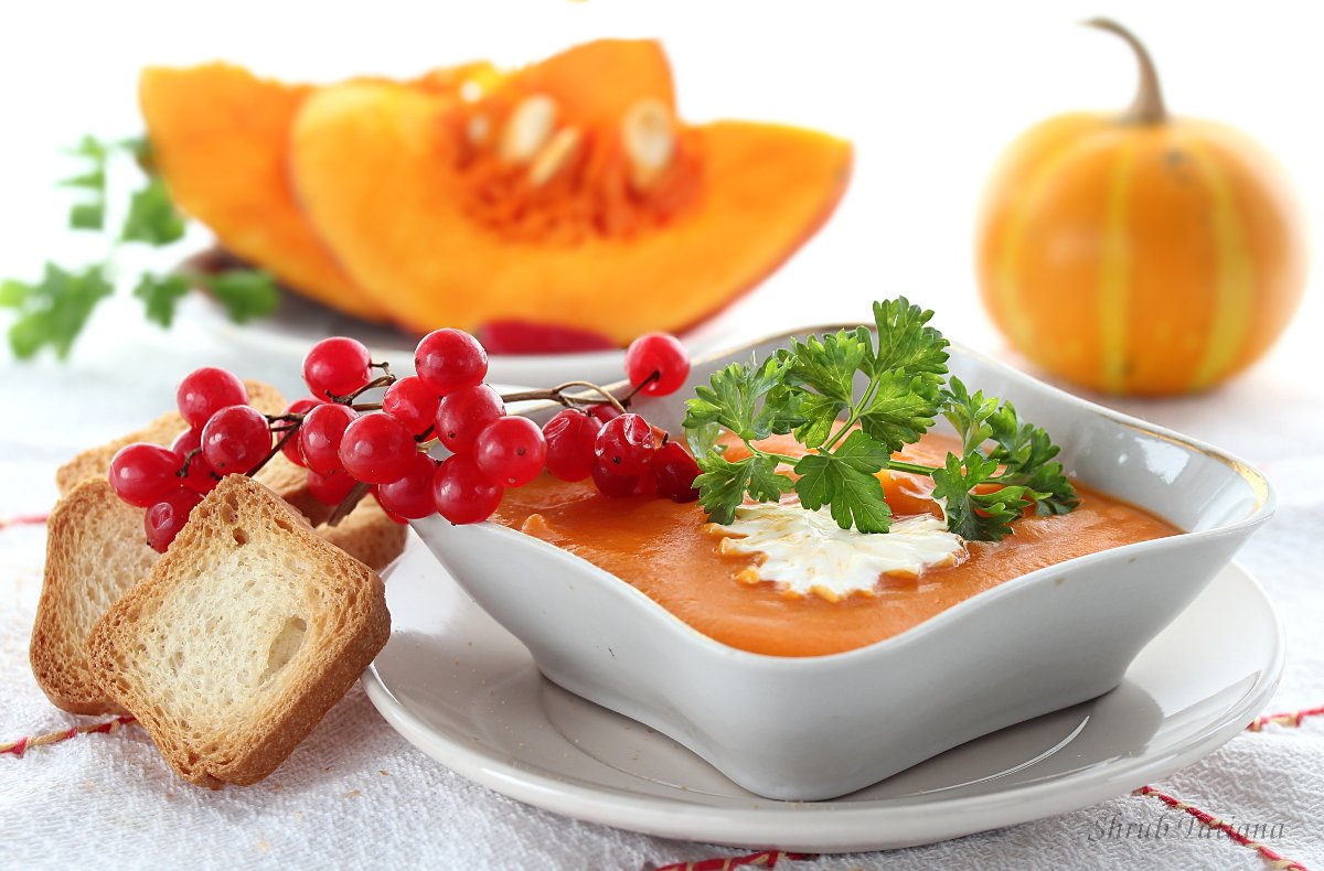 натюрморт, суп, тыква, калина, обед, сухарики, Шруб (Беляева) Татьяна