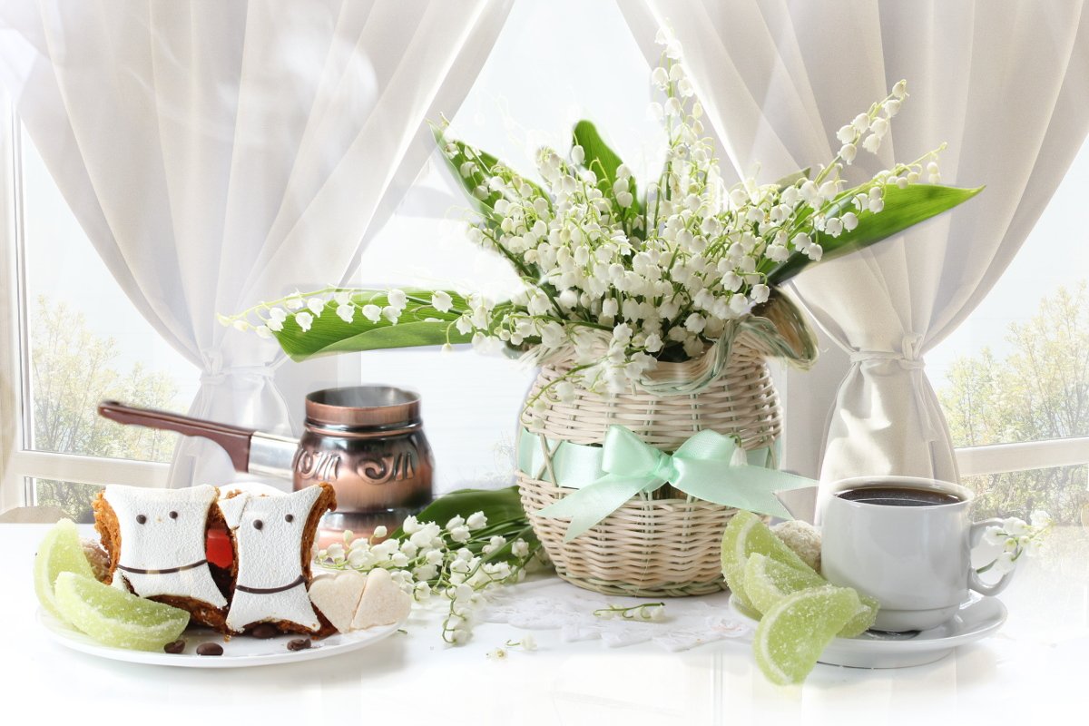 весна, цветы, ландыши, кофе, печенье, мармелад, Шруб (Беляева) Татьяна
