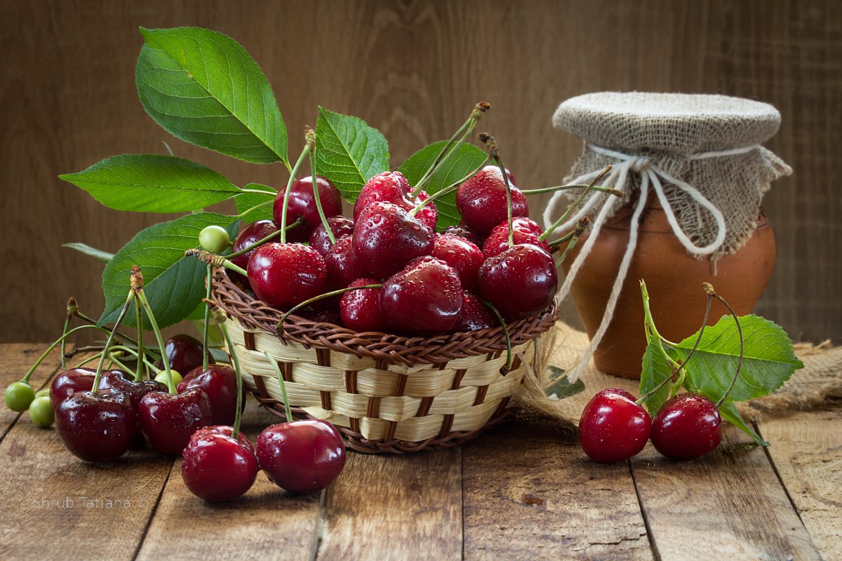 натюрморт, ягоды, черешня, крынка, Шруб (Беляева) Татьяна