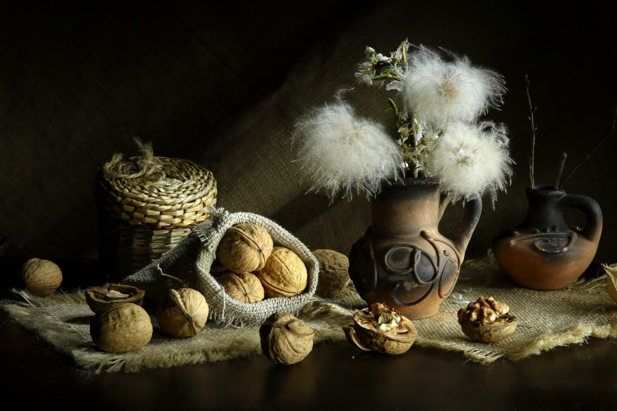 орехи, ваза, цветы, Шруб (Беляева) Татьяна