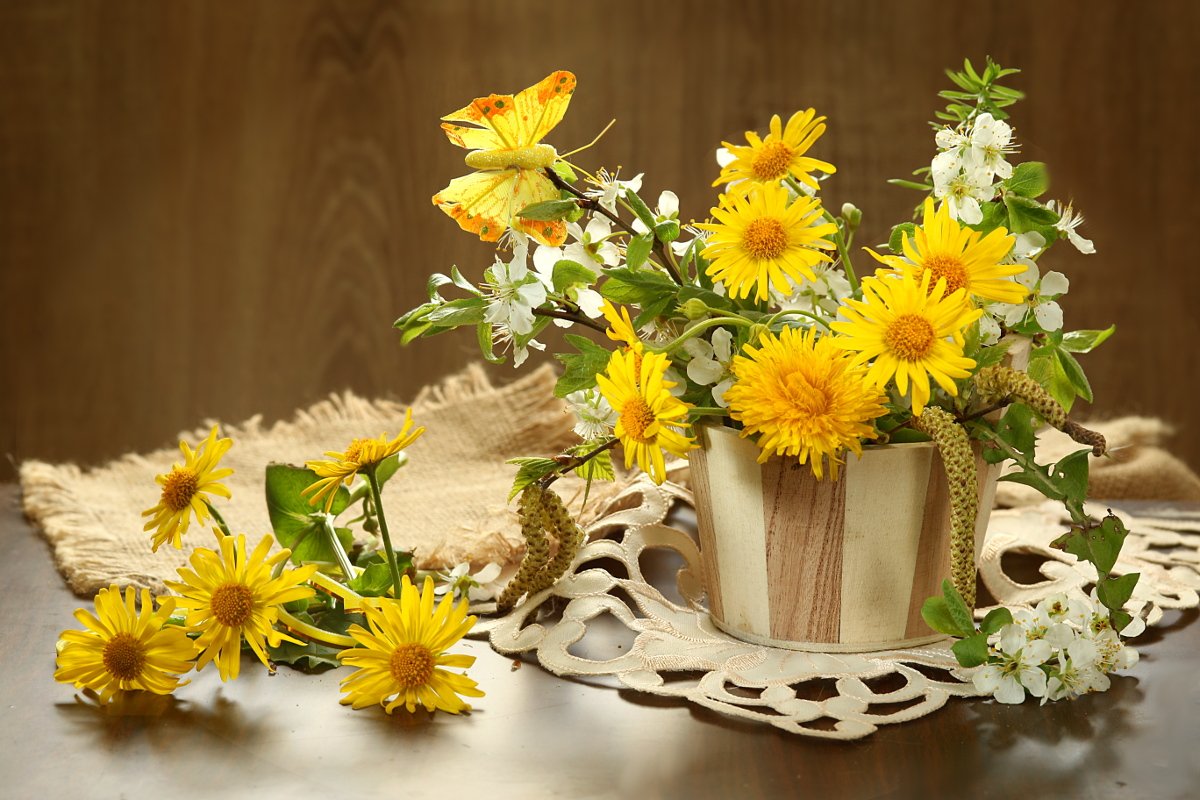 букет, цветы, желтые, ветка вишни, Шруб (Беляева) Татьяна