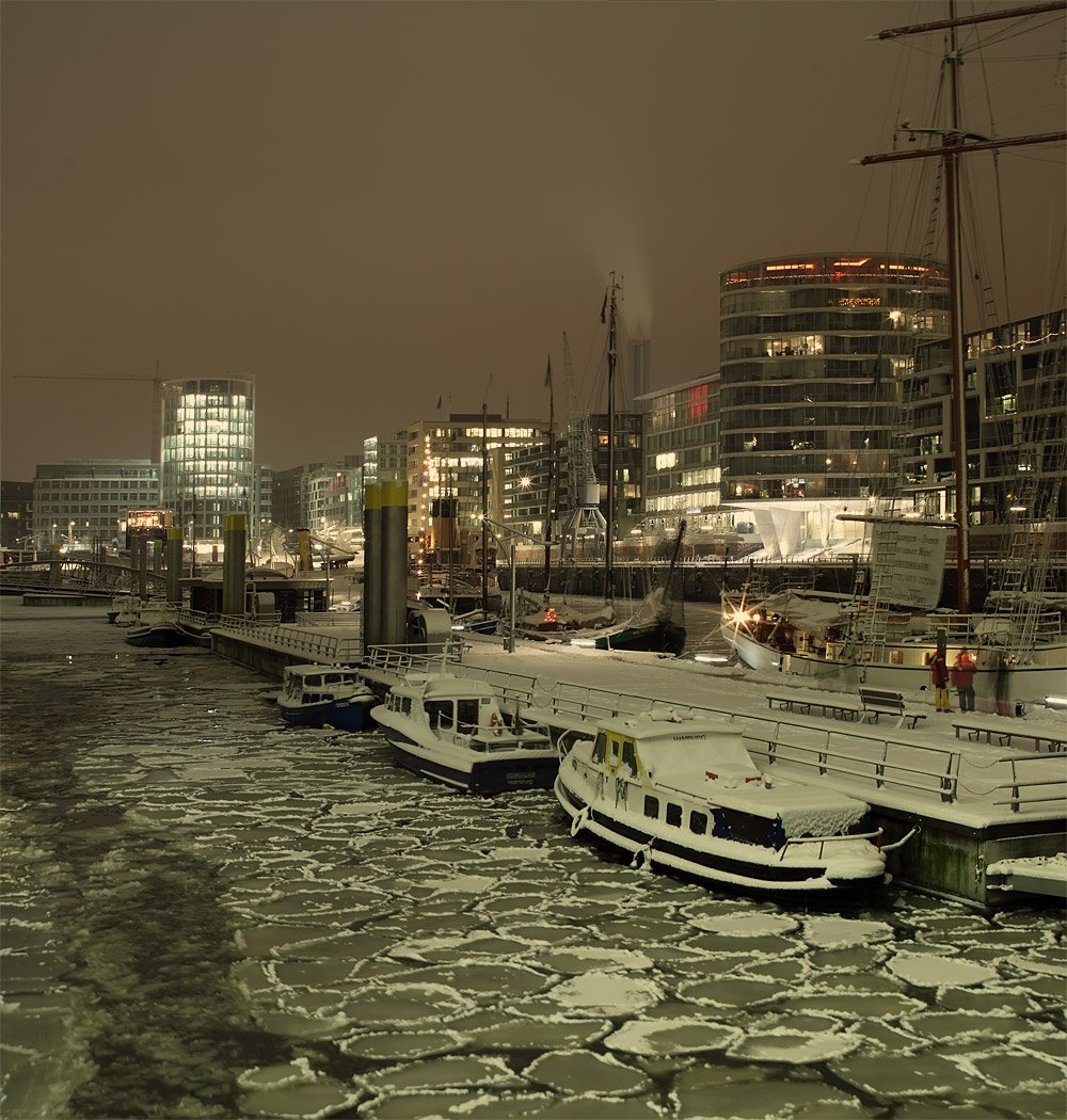 Дима, затрудняюсь ответить, могу только предположить. В двухсотнях метров канал соединяется с Эльбой, где ещё нет льда и постоянное движение кораблей и мелких суден. Возможно мелкие льдинки постепенно намерзают и обрастают, но из-за постоянного движения воды в канале и перемешивания с тёплой не смерзаются вместе. А время от времени их разделяют проходящие с туристами прогулочные катера. Вобщем, внятно объяснить не могу:)