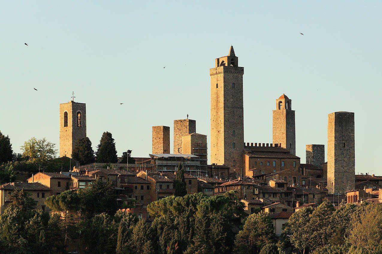 Своего рода средневековая стройка тщеславия. Местные богатеи придумали себе такое развлечение строить у своих домов высокие башни. И каждый старался построить выше предыдущего. Но городские власти решили остановить этот процесс, построив башню у ратхауза и издали закон, что выше её никто не имеет права строить (она самая высокая на снимке). Их было около 70, На сегодня осталось 9, одна не видна на снимке. Город настигли такие страшные болезни, как чума и холера, а время и войны уничтожили большую часть башен. Я побывал на смотровой площадке одной из них, та на которой фигура человека, пока ещё крепенькая башня:)