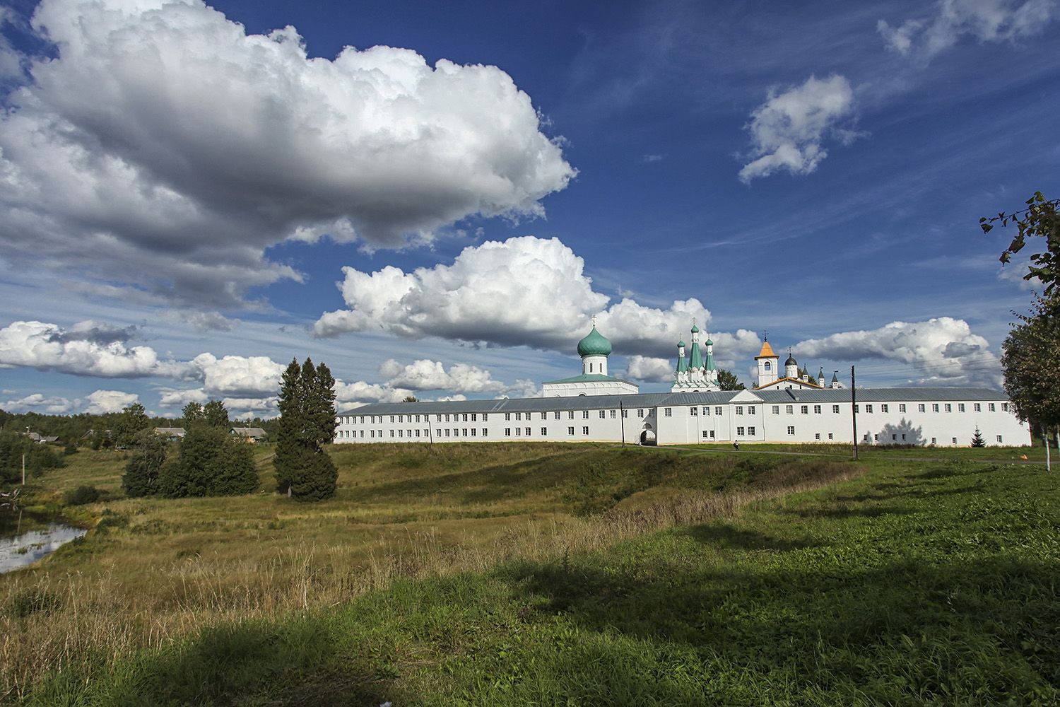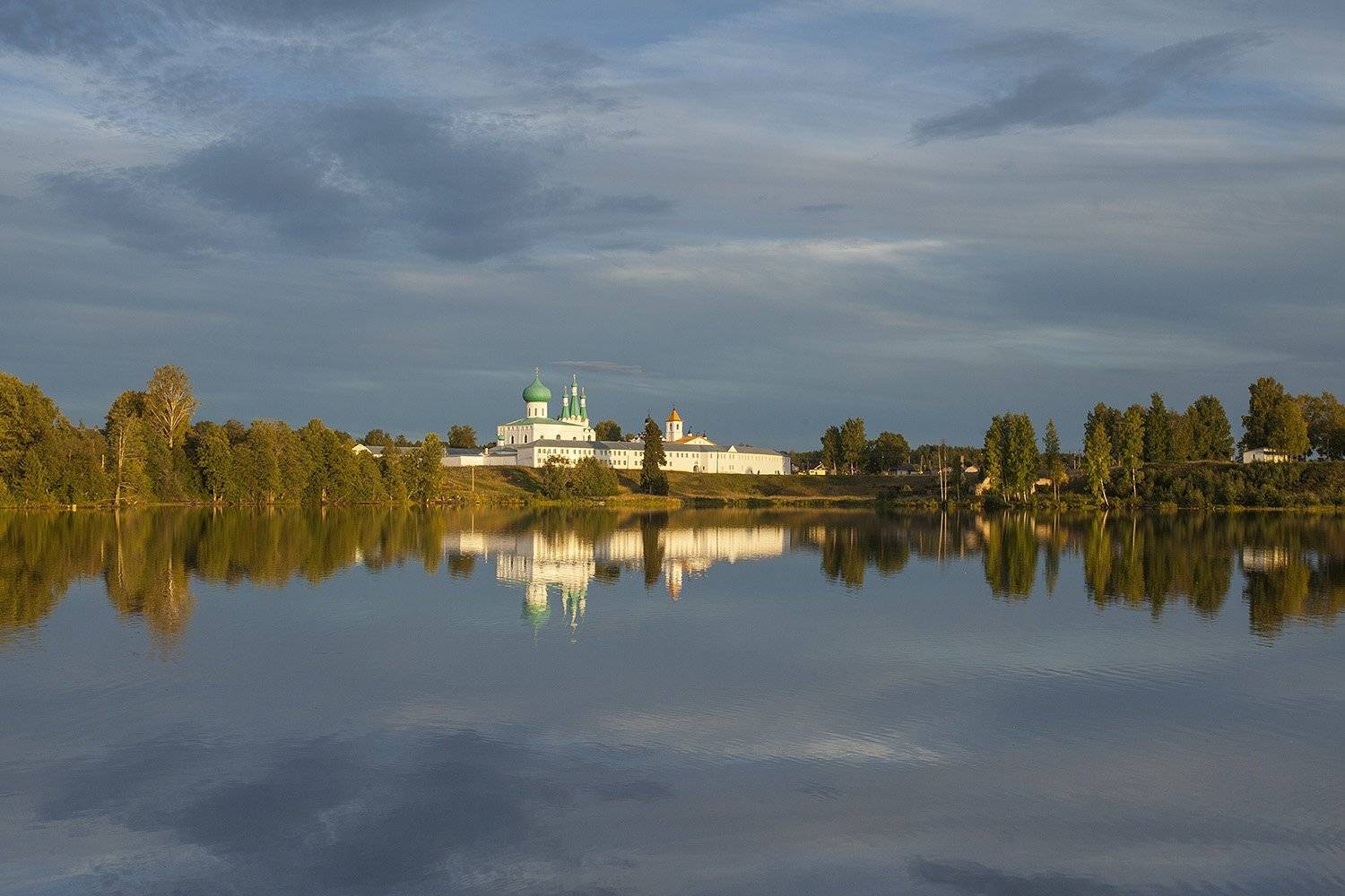 В начале XVI века в уединенном месте, где молился преподобный произошло явление ему Святой Троицы. По благословению Святой Троицы Преподобный построил деревянный Троицкий собор и каменную церковь Покрова Пресвятой Богородицы. Затем он основал и сам Свято-Троицкий монастырь. Почти с самого своего основания монастырь складывался как объединение двух поселений: при братских келиях - Троицкий комплекс, у монастырского кладбища -- Преображенский комплекс. Оба комплекса представляют собой единый памятник архитектурных строений XVI-XIX веков.