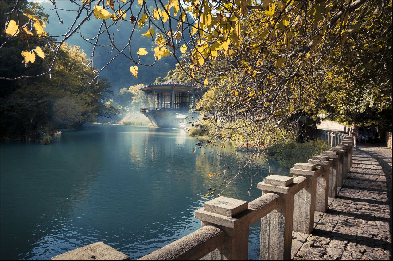 Есть в Абхазии очень живописное место, эдакий постапокалиптический всеми забытый райский уголок, где природа на столько гармонирует с инженерными постройками, что кажется что находишься в компьютерной игре, с красивым дизайнерски выверенном мире, мне например очень сильно напомнило прекрасную серию квестов Syberia)))