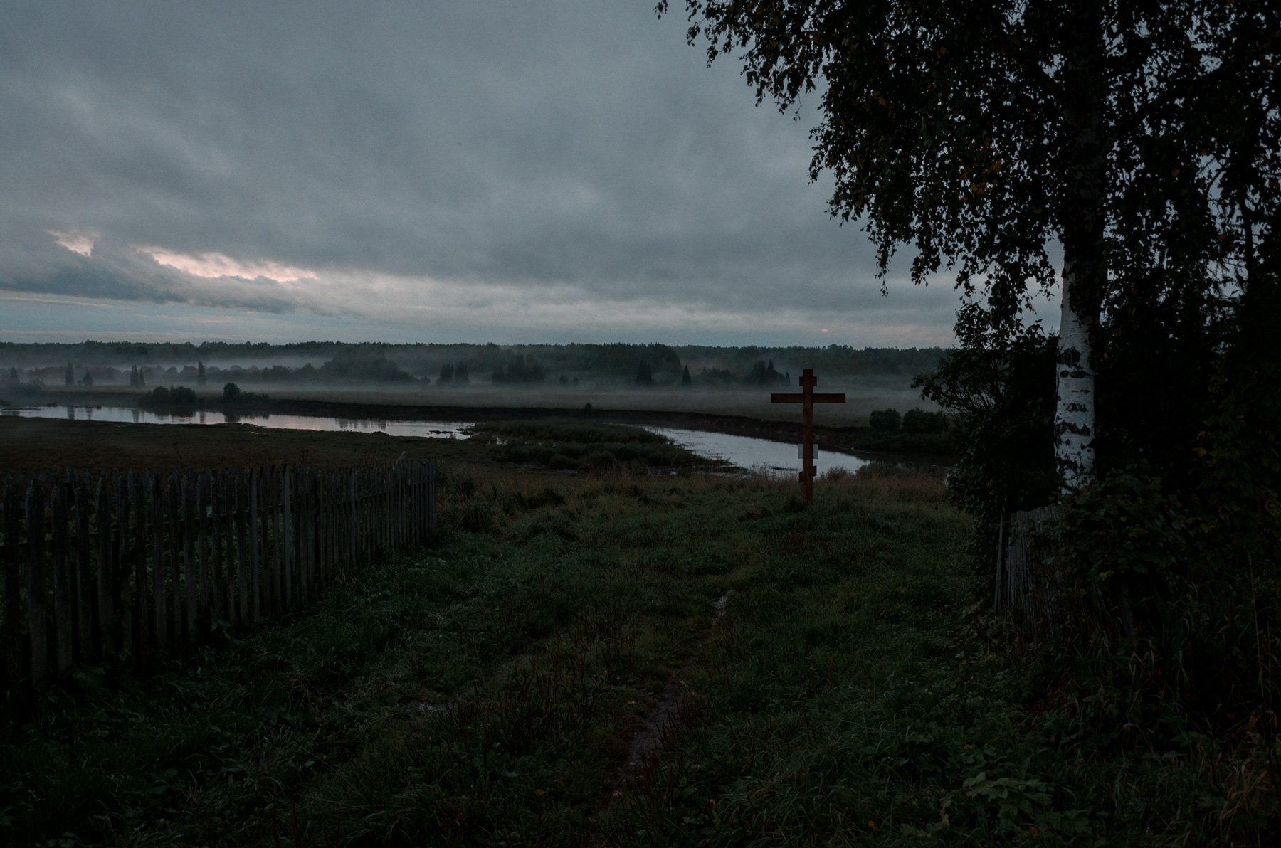 Крест воздвижен на месте бывшего Храма Рождества Христова и Св. Николая Чудотворца 27 сентября 2014 г. (Кама/Окраина села Бисерово/Кировская область 27.08.15)