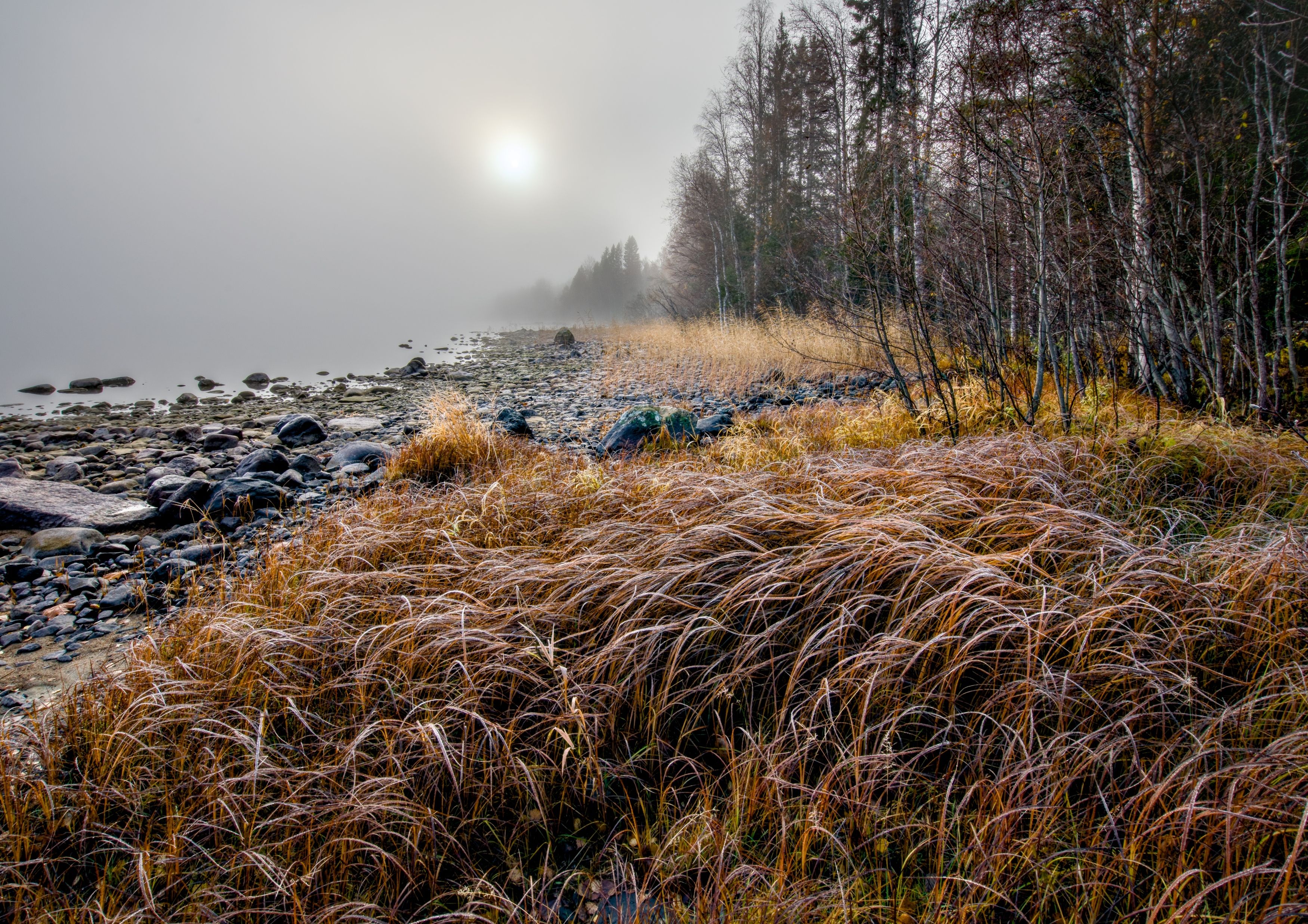 мороз озеро трава осень туман, Шишпанов Игорь