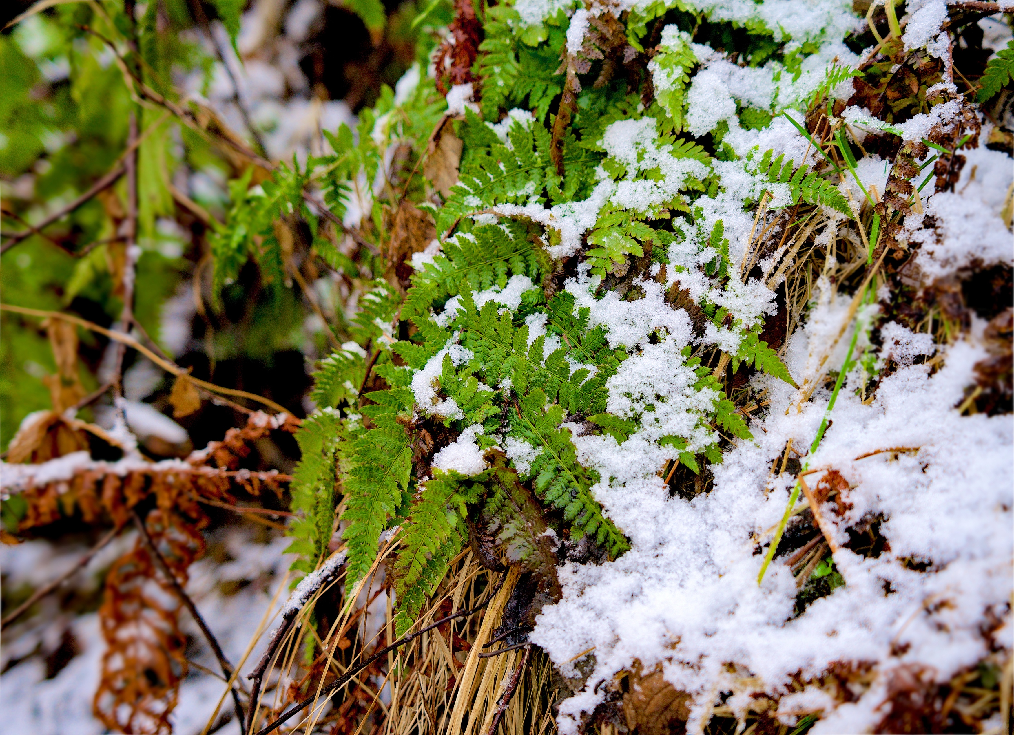 Игорь, снимок — как первое прикосновение зимы: нежно, почти неожиданно. Зелень под снегом — будто природа не успела уйти, а уже вступила в диалог с холодом. Кадр живой, с текстурой, почти осязаемой. 🌿❄️