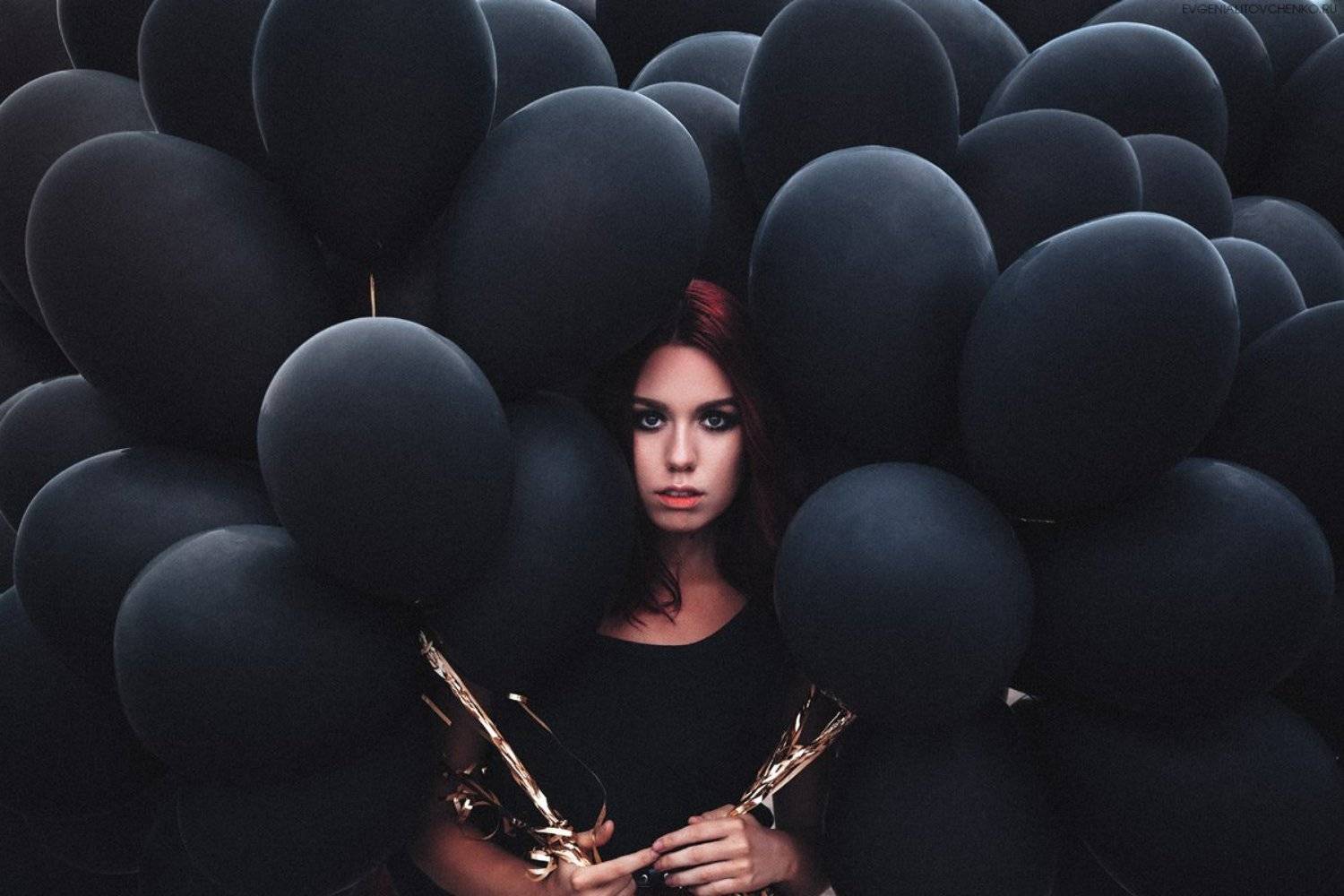 БерегВоздухВоздушные шарикиВолосыДевушкаКрасныйМореПлатьеПолетЧерныйШарЮбка