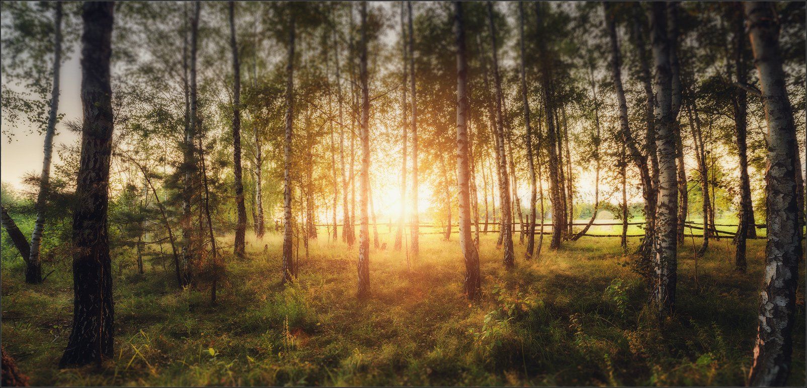 березы, закат, пейзаж, Александр Чорный