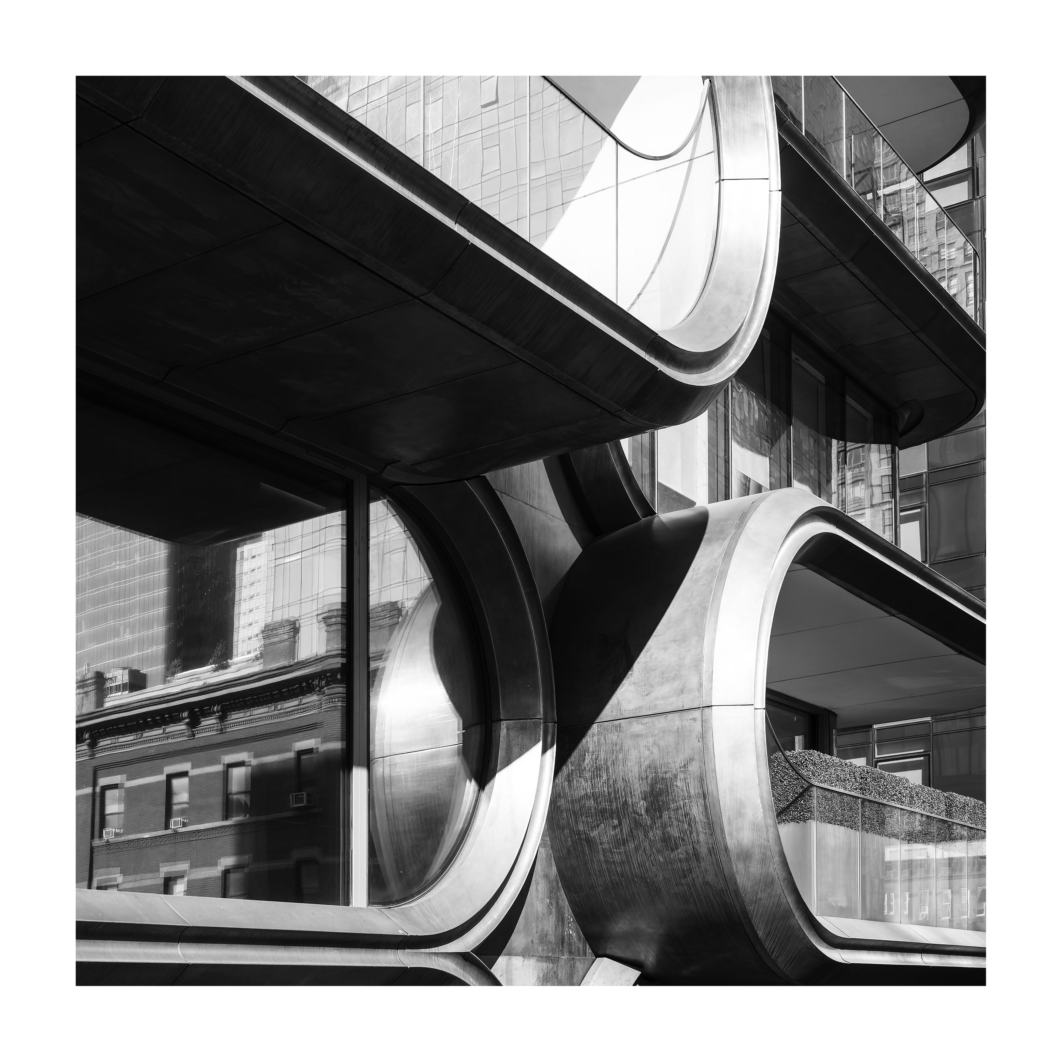 Bobus, this is a clean, well-composed architectural study. The contrast between the curved metal forms and the reflected brick building adds real depth to the frame. I like how you’ve isolated the geometry — it feels deliberate and quiet.