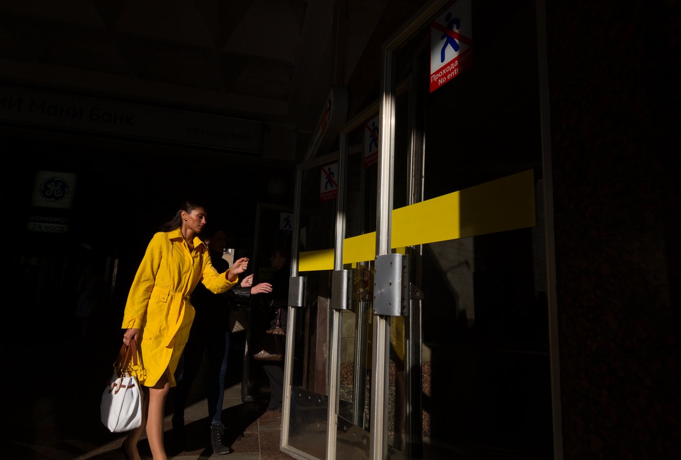 Вы хорошо уловили идею, но к сожалению, все остальное тут очень плохое, и обрезанная нога, и закрытый глаз, и сумка выбивается, и завал и ужасные провалы в экспозиции. Мой вам совет, который конечно любой репортажник с гневом отбросит: попробуйте из этого же сделать постановочный кадр.