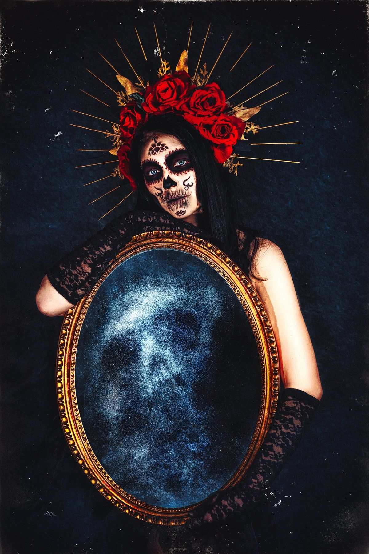 Ghost, Mirror, Portrait, Scull, Woman, Руслан Болгов (Axe)