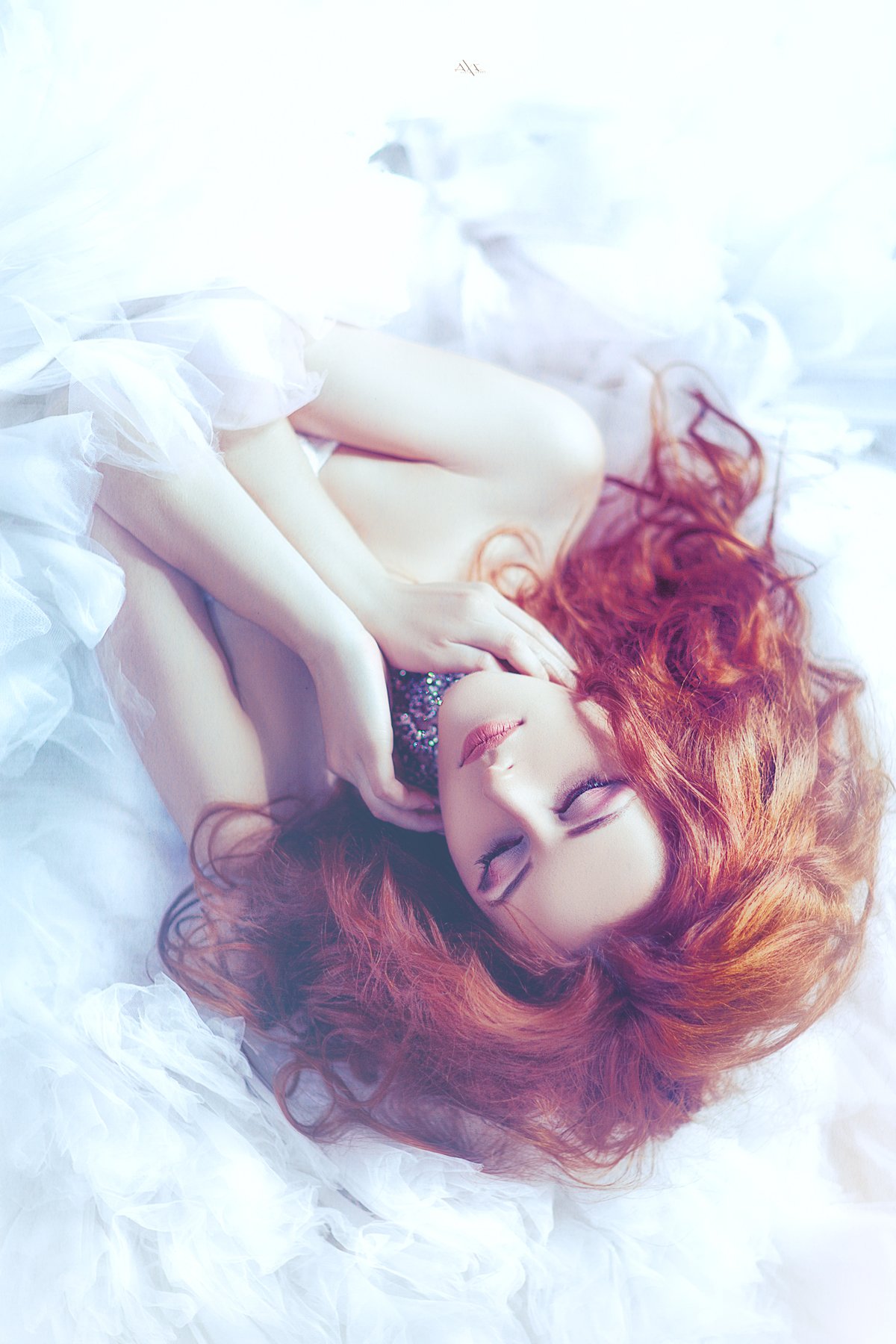Очень хороший кадр .Но я бы фото повернул на 180 . И смотрелось бы лучше , да и волосы явно лежат сверху вниз , т.е. поворот напрашивается.