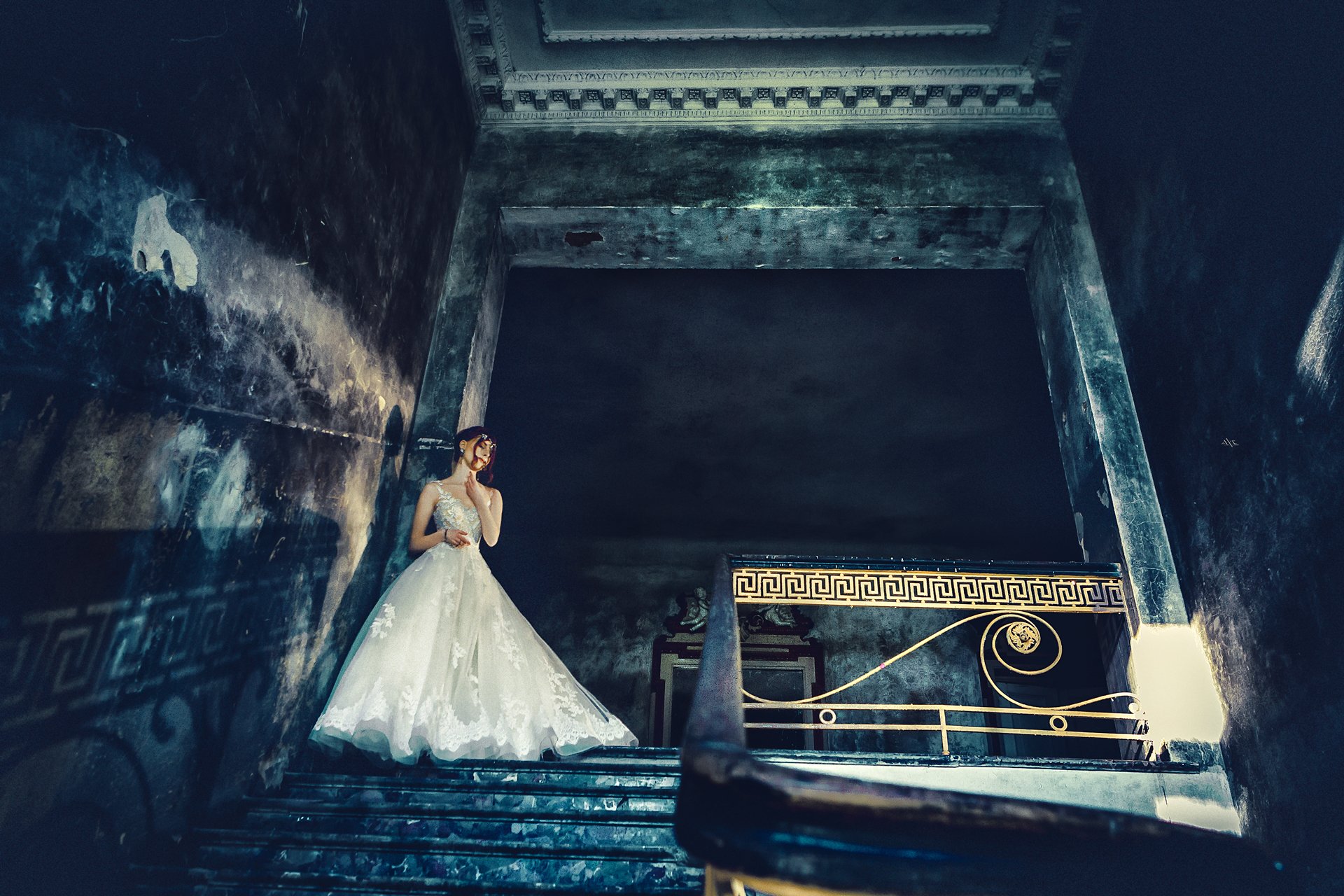 woman, model, beauty, dress, bride, wedding, abandoned, old manor, toning, Руслан Болгов (Axe)