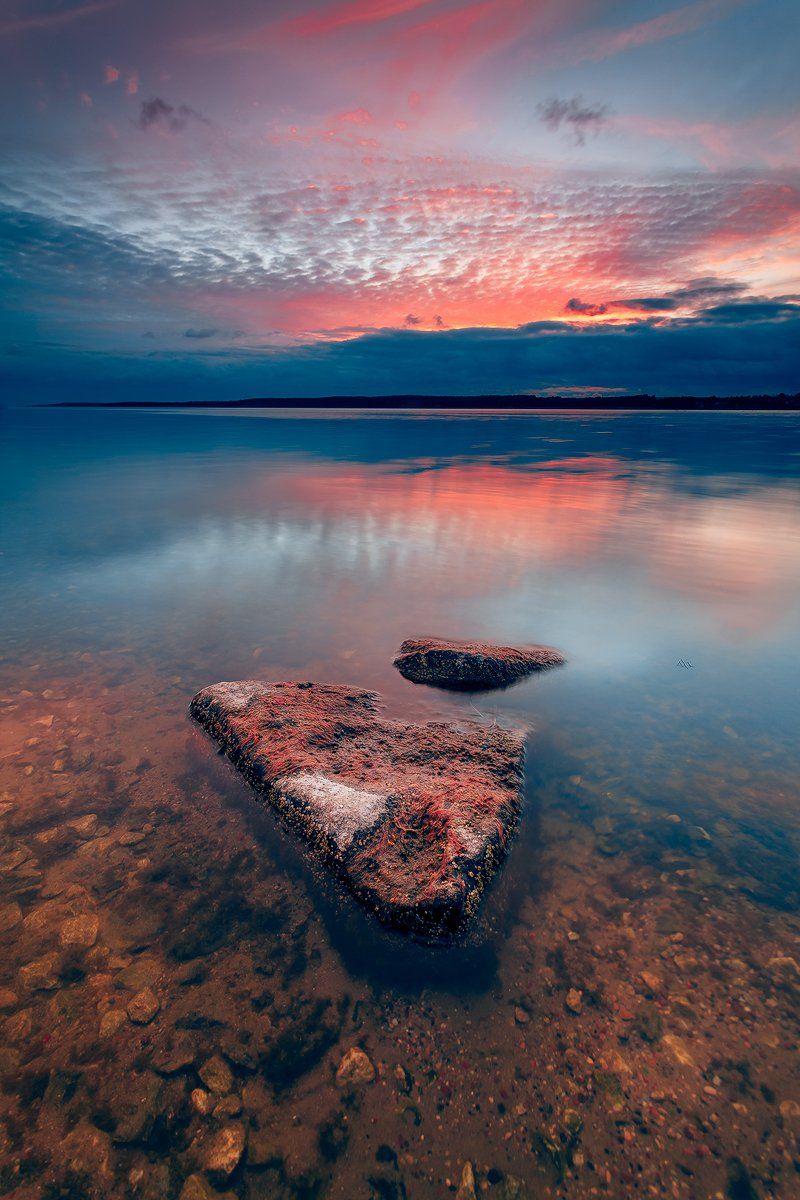 sunset, curonian gulf, lithuania, colors, stones, reflection, Руслан Болгов (Axe)