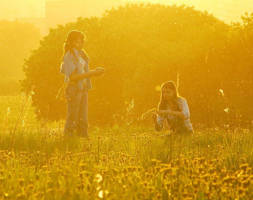 закат, одуванчики, поле, солнце, лето, девушки, Большаков Александр