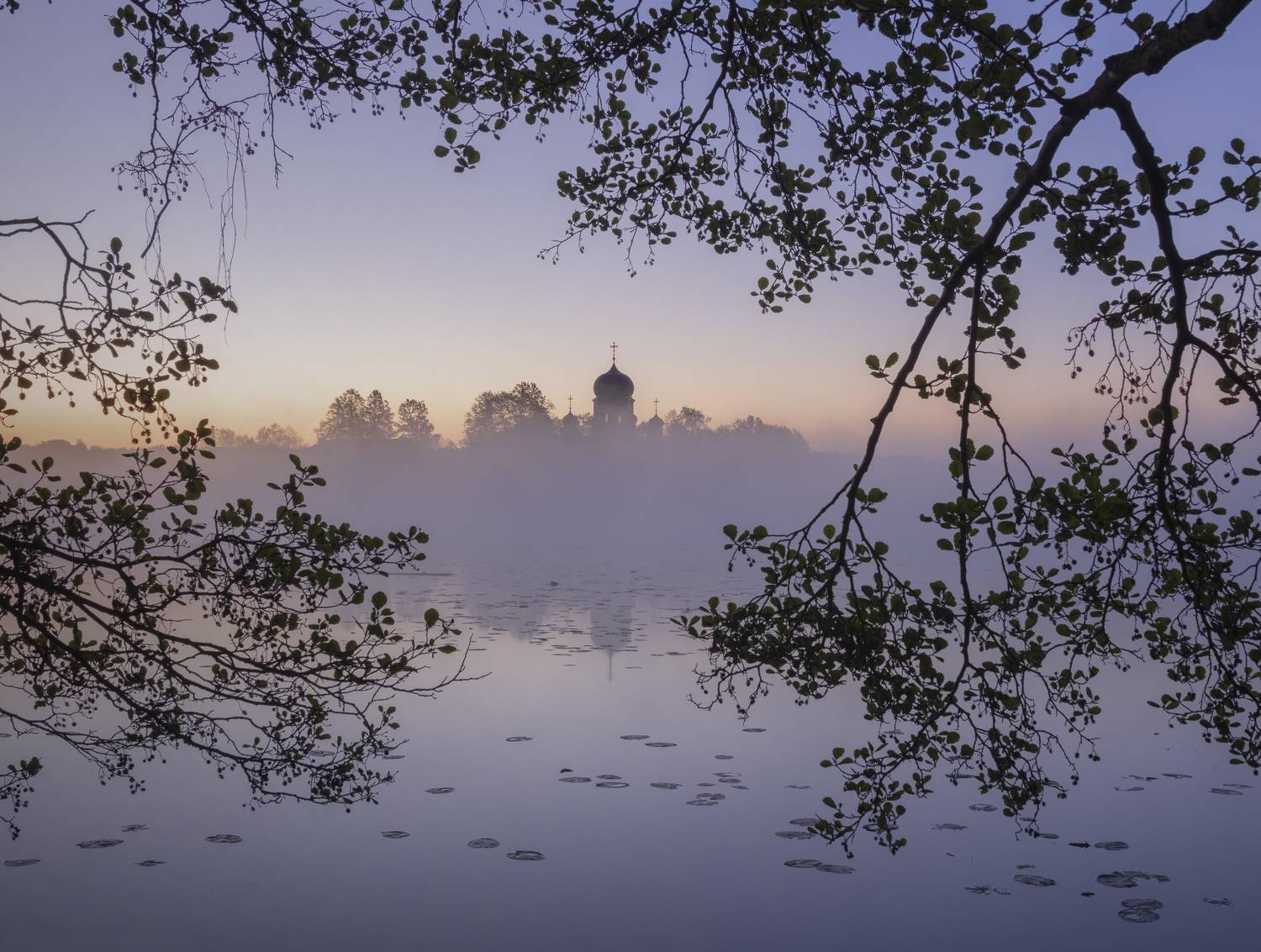 Красочный рассвет над Покровской Введенской островной пустынью