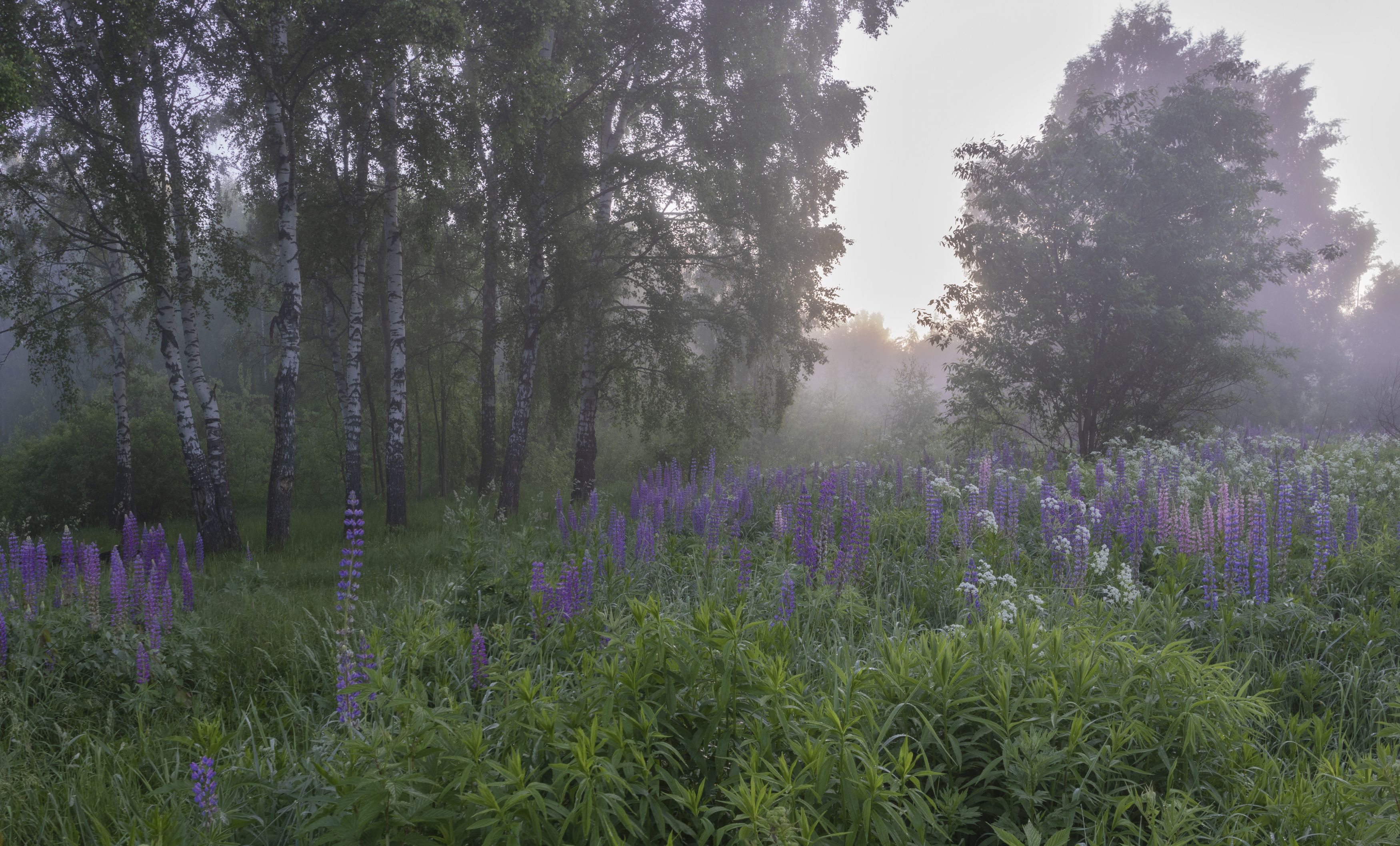 природа, пейзаж, туман, люпины, Ольга Бонина