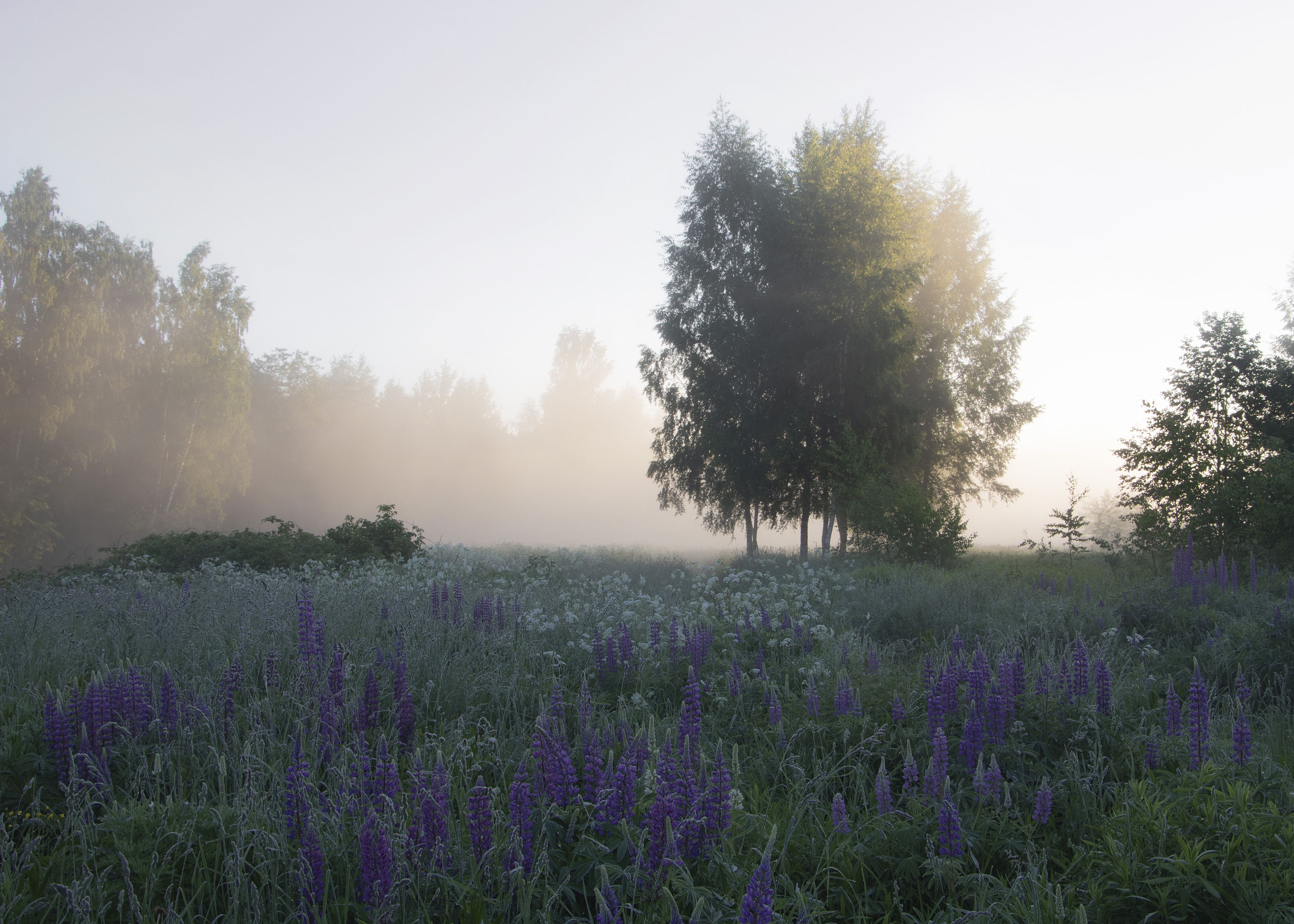 природа, пейзаж, туман, люпины, Ольга Бонина