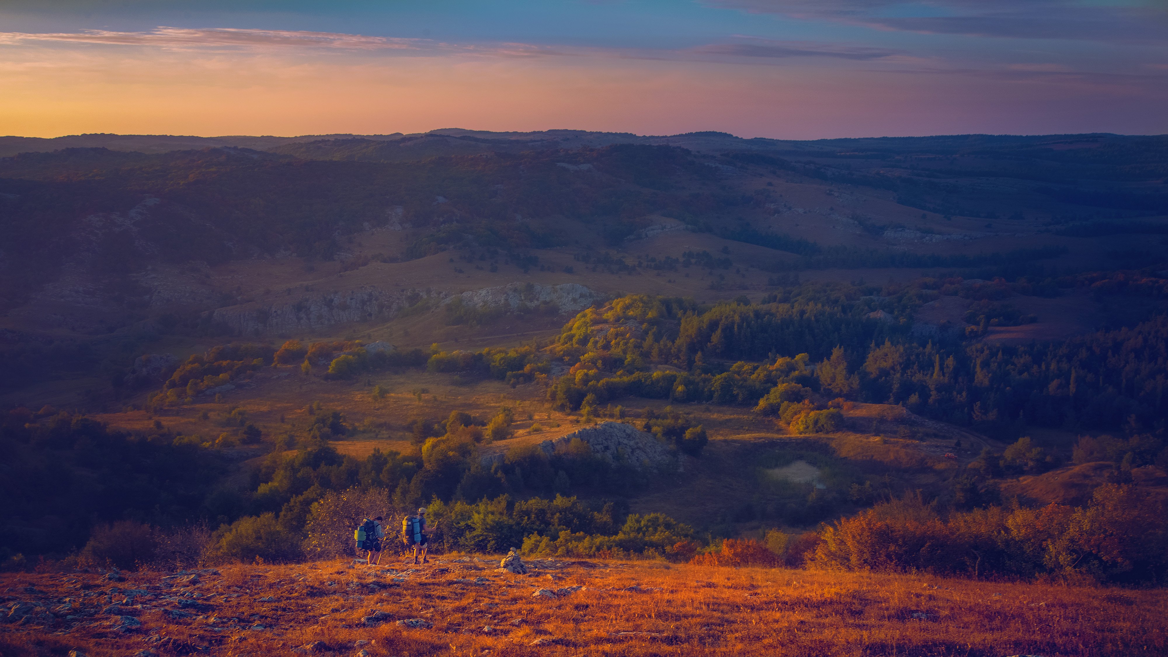 На вершине ай-петринского плато, что недалеко от Ялты, я оказался под самый заход солнца и почти сразу встретил пару. Молодой человек, с большой зеркалкой и огромным объективом, и его девушка. Оба с рюкзаками, набитыми походным оборудованием. Так вот эти ребята в панике искали, где разбить лагерь. После пары минут общения, я понял, что такую роскошь, как разбить лагерь "везде, где угодно" они себе позволить не могут. Им нужно срочно быть рядом с каким-нибудь жилищем людей. Уточнять не стал, но думаю затем, чтобы их не растерзала богатая фауна крымских гор! И вот оно!!! Смысл фотографии!!! Солнце гладит плато своими нежными вечерними лучами, а фотограф в холостую глазеет на проносящиеся мимо пейзажи. Спешит привести свою даму в правильное укрытие.
