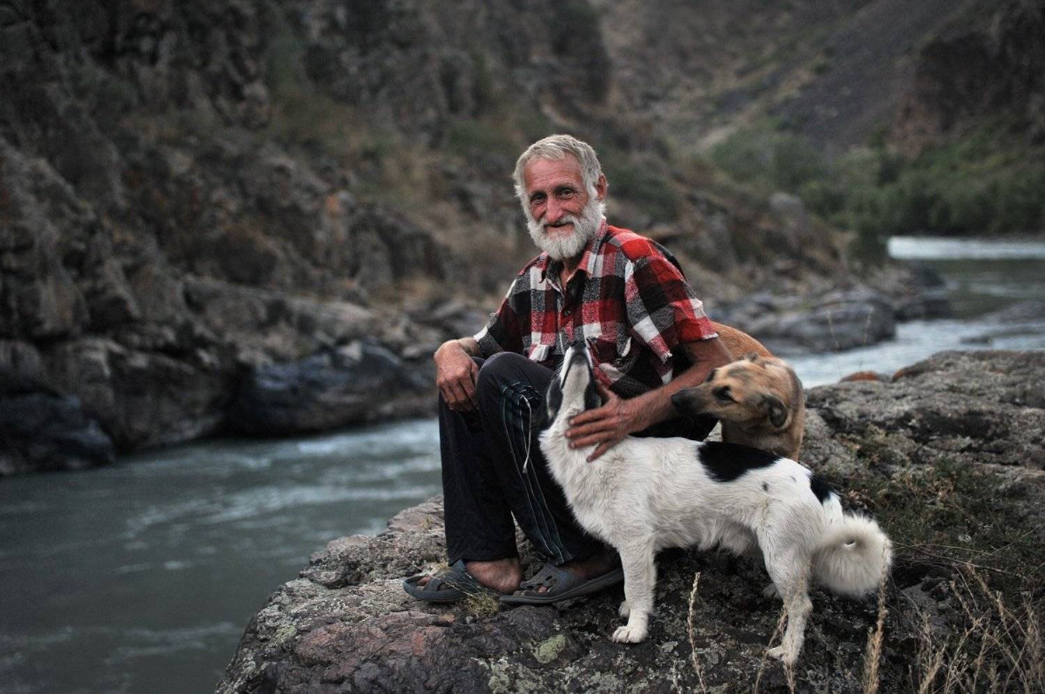 Геннадий Алексеевич. р. Коксу, Казахстан. Уже более четверти века живёт он на берегу этой дикой реки , куда нет дорог, лишь петляющая тропа через перевал. Мы попали к нему сплавляясь на катамаранах. Раньше он работал геологом, вспоминает о временах, когда люди везде были дружелюбными и встречали гостей хлебом-солью, "теперь моё время привечать..."
