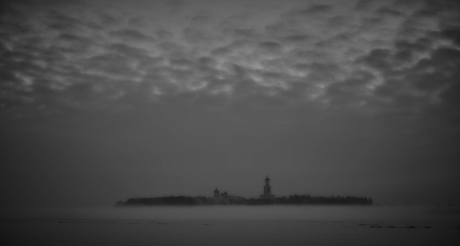 Юрьев монастырь и река Волхов.