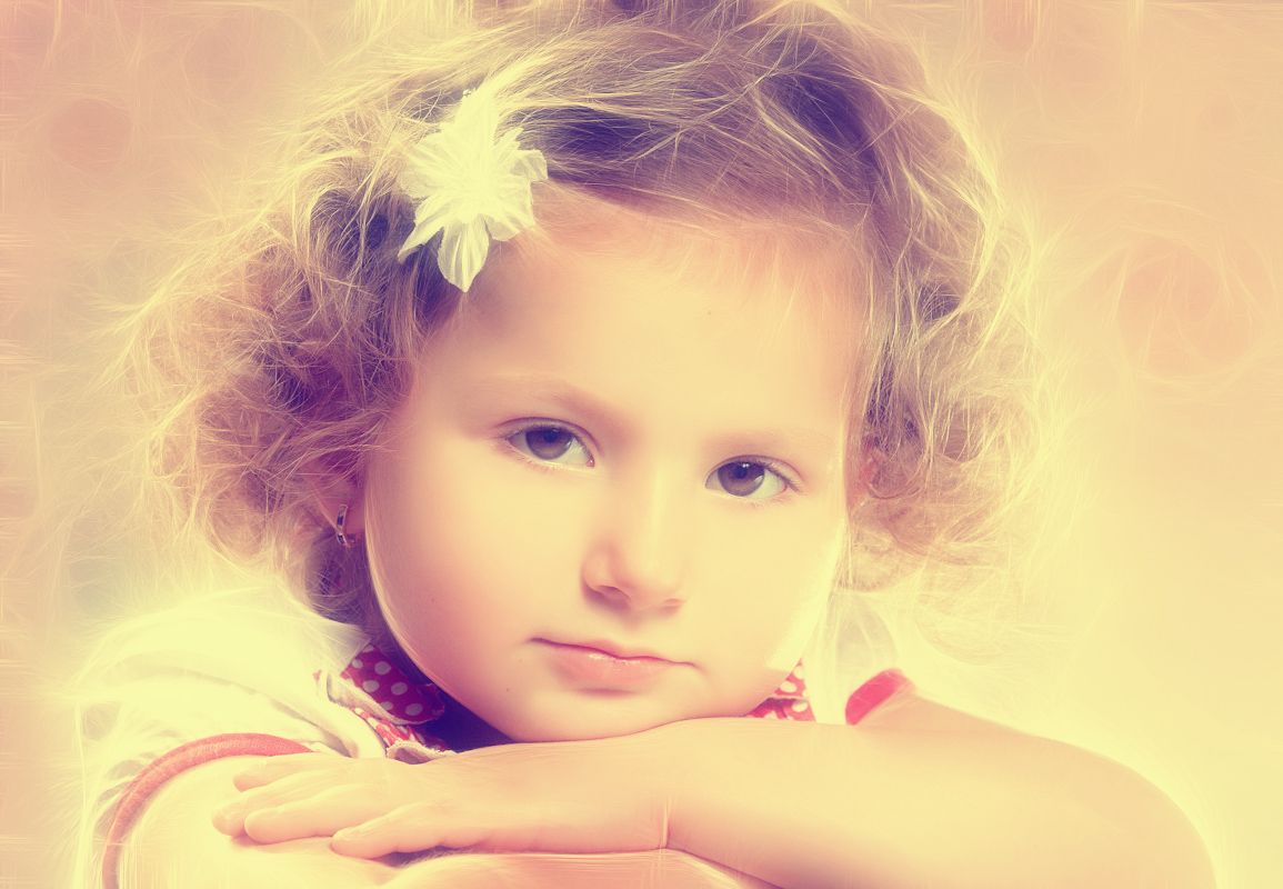 ну так получилось вроде особо сильно я ее и не шопил, но в некоторых местах видать, где блик на щеке например на 2-ой там почему-то тектура присутствует, я-то сам супротив всякого мыла, мобыть еще и кожа у ребенка така