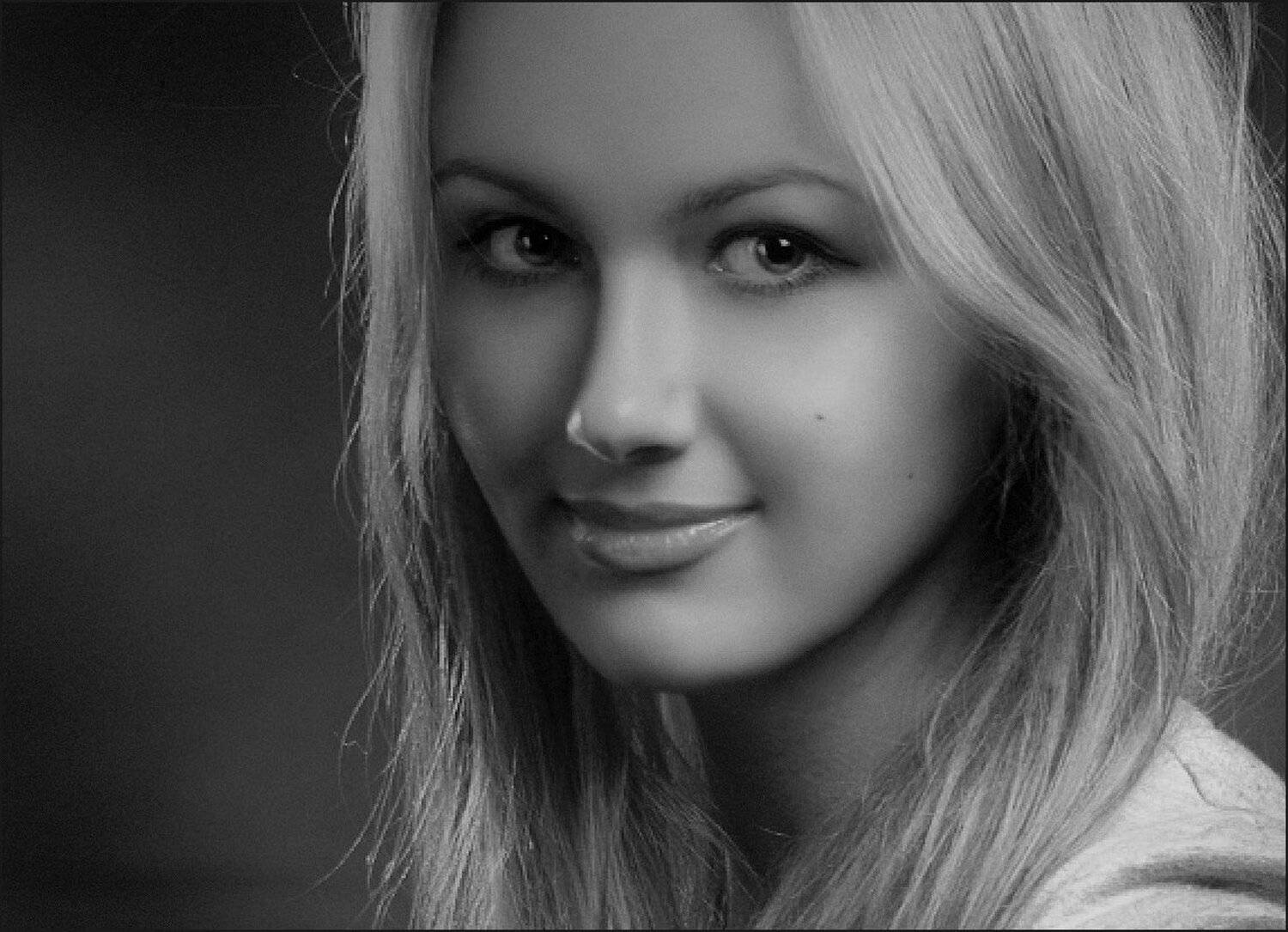 Мне в цветной версии нравится, как цвет глаз сочетается с фоном.