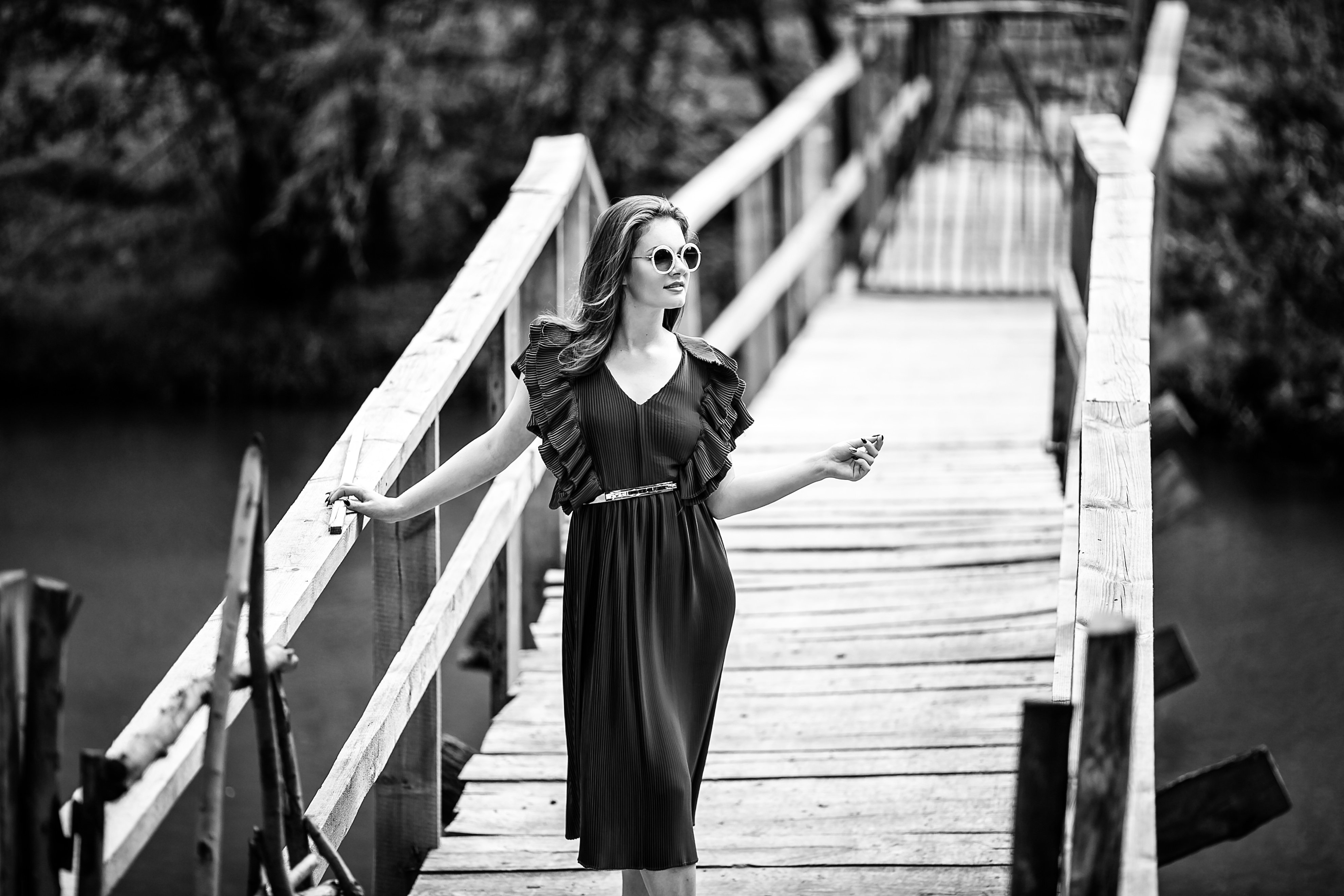 Черно-белое, лето, модель, на мосту, красивая девушка,фотосессия, Мария Братан