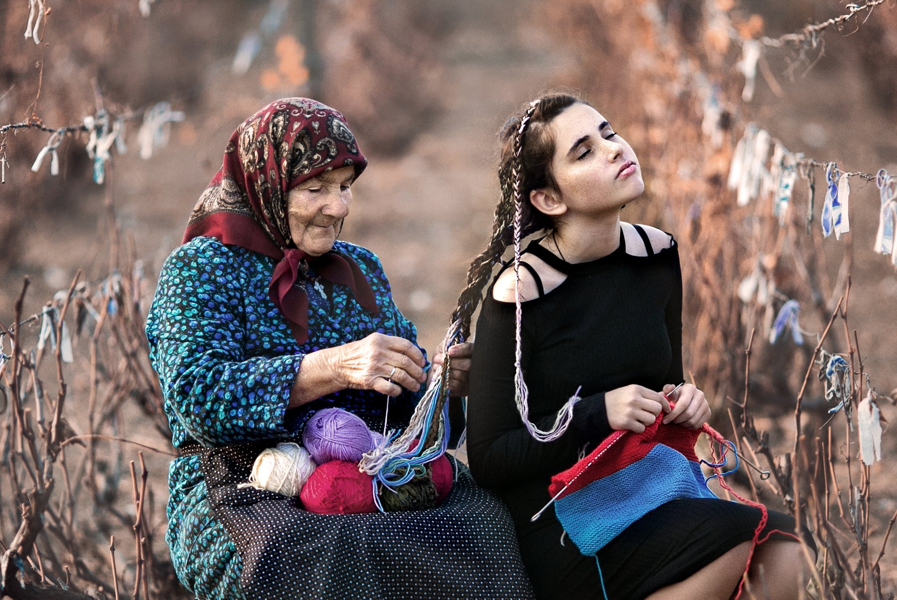 осень, портрет, девушка, бабушка, вязания, нитки, косички, Мария Братан