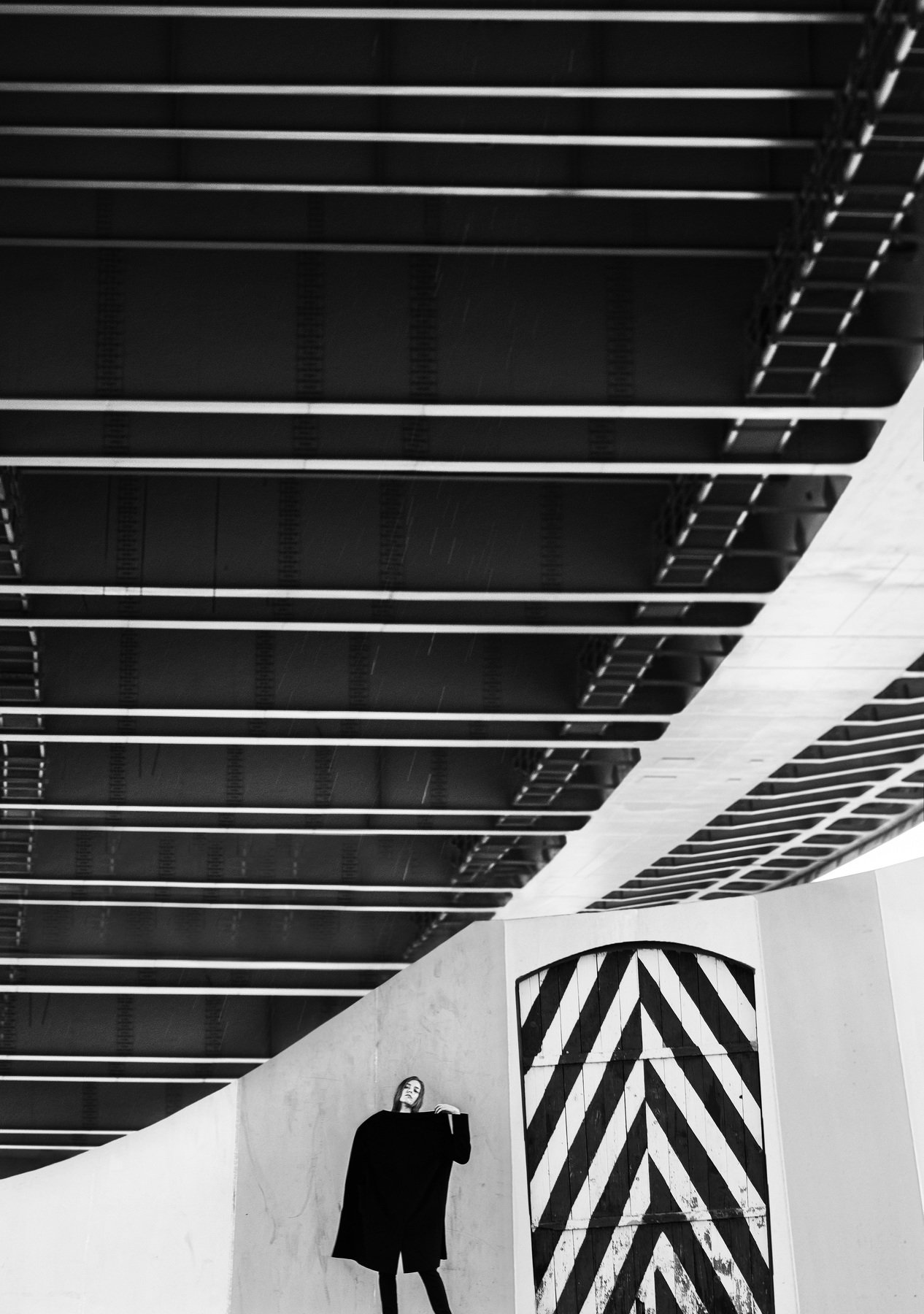 чб,девушка,линии,геометрия,улица,мост, Мария Буданова