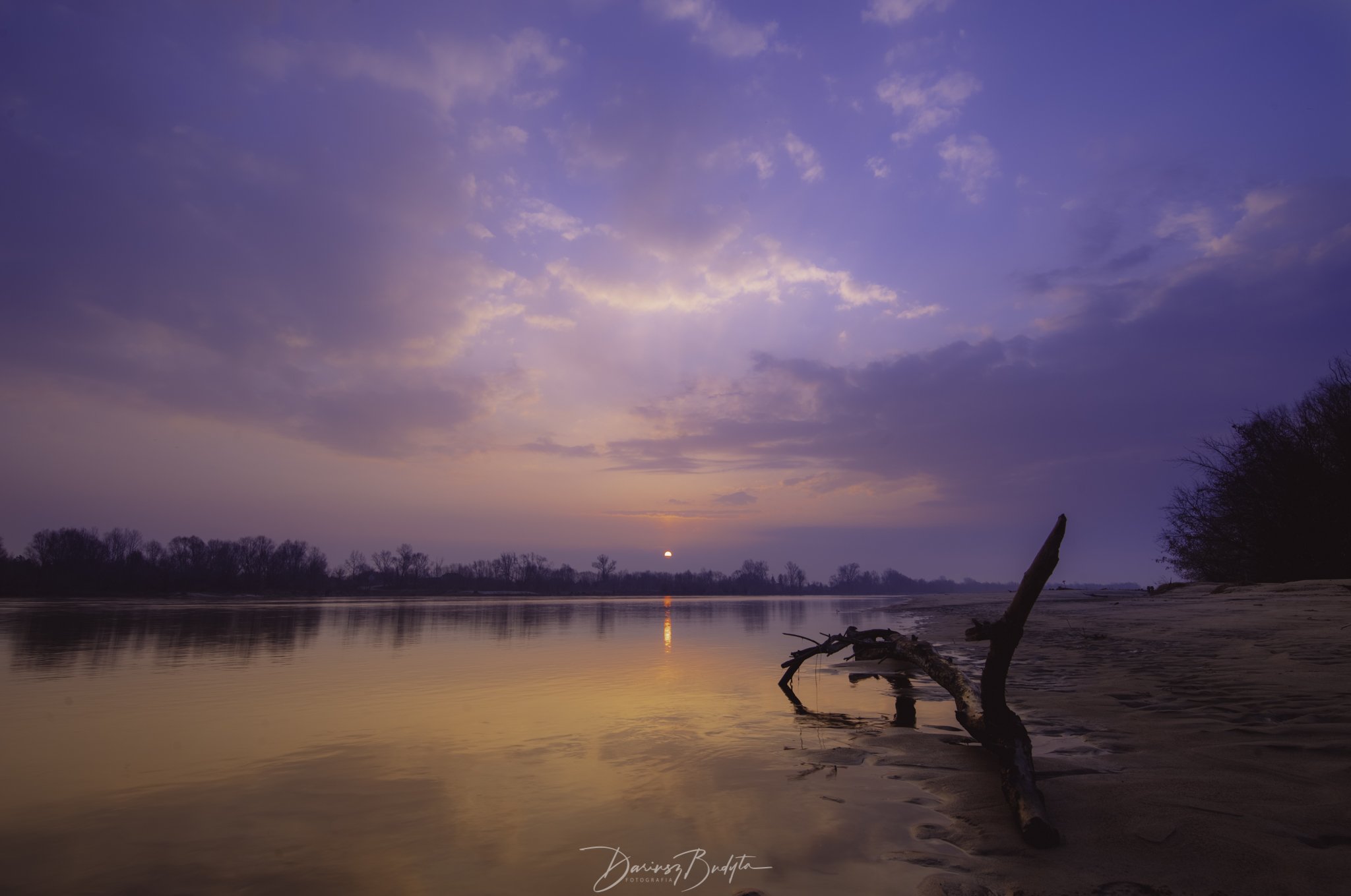 sunrise, winter, river, vistula, sky,clouds,sand,trees,refection, Dariusz Budyta