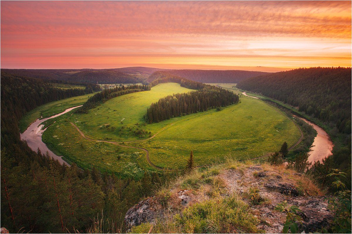 закат небо камень река вечер иргина пермский край, Николай Бузмаков
