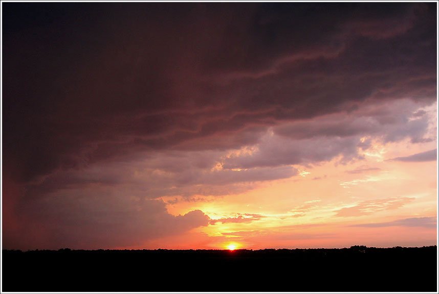мне тогда понравился контраст: с одной стороны - закат красивый. а с другой - молнии, гроза.... И вот она надвигается на закат...