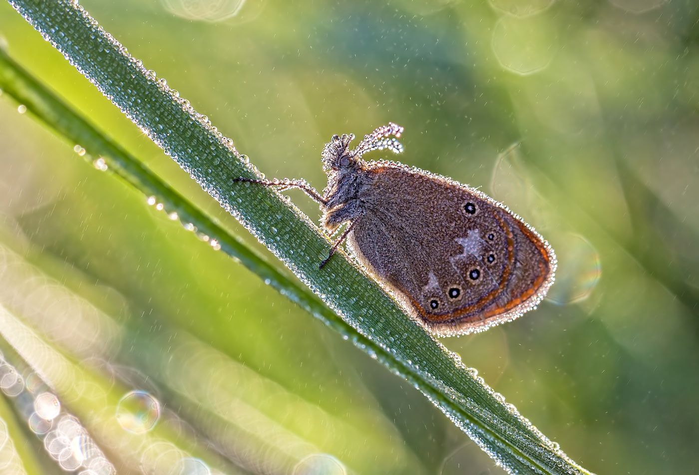 насекомые, бабочка, нимфалида, сенница, луговая, утро, роса, лето, Борис Новиков