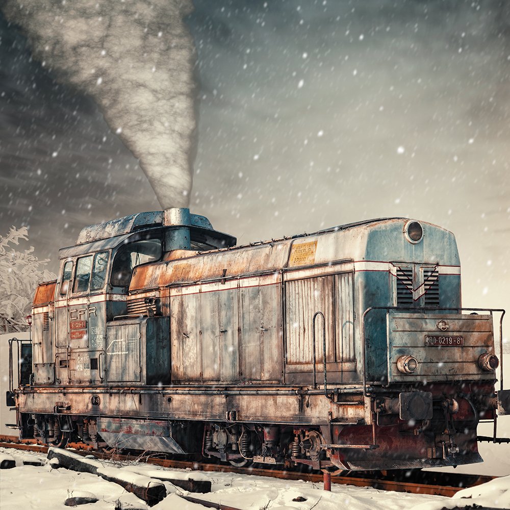 old, train, white, snow, smoke, manipulation, photoshop, tutorials, photomonipulation, Caras Ionut