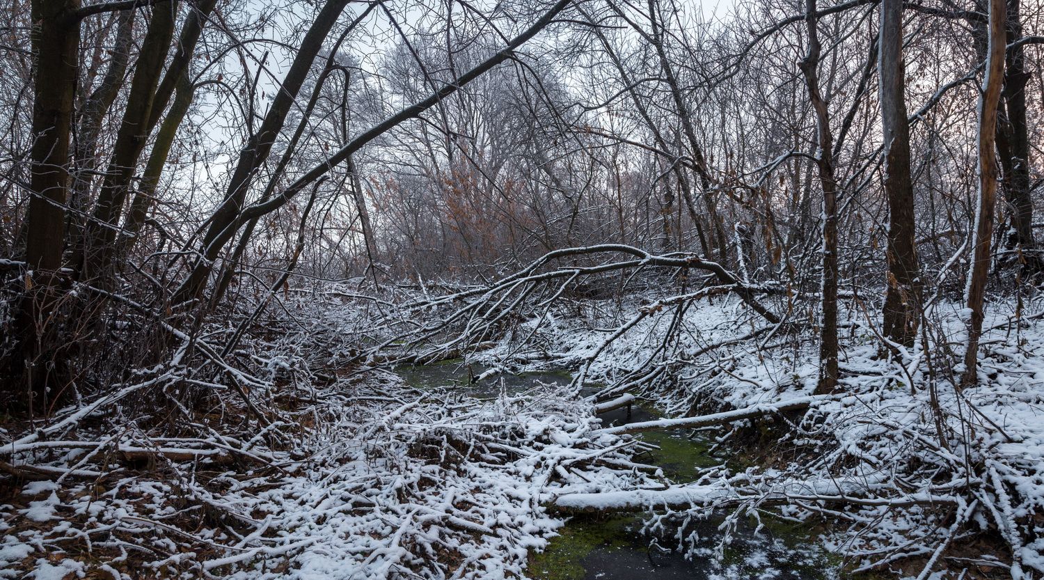 Замерзший лесной ручей