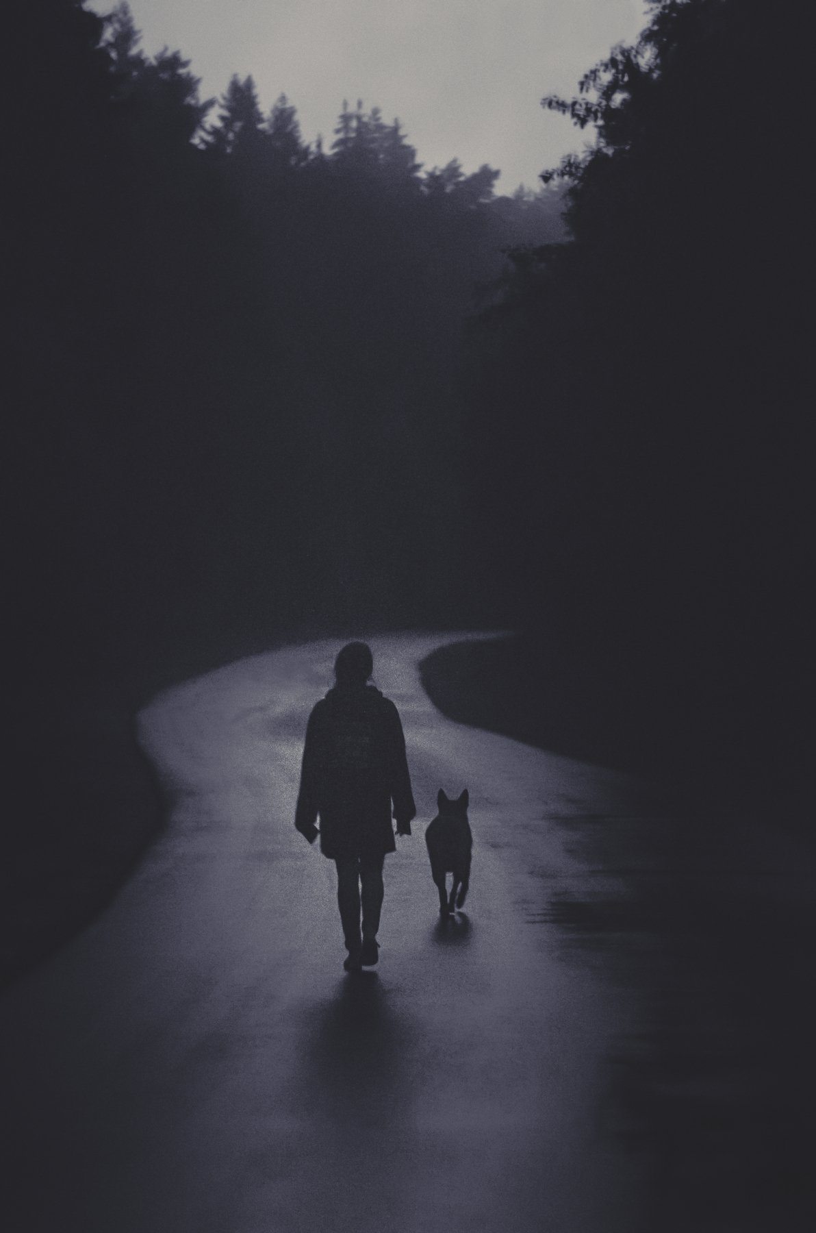 mood, girl, fog, forest, dog, mist, evening, , Ченцов Георгий