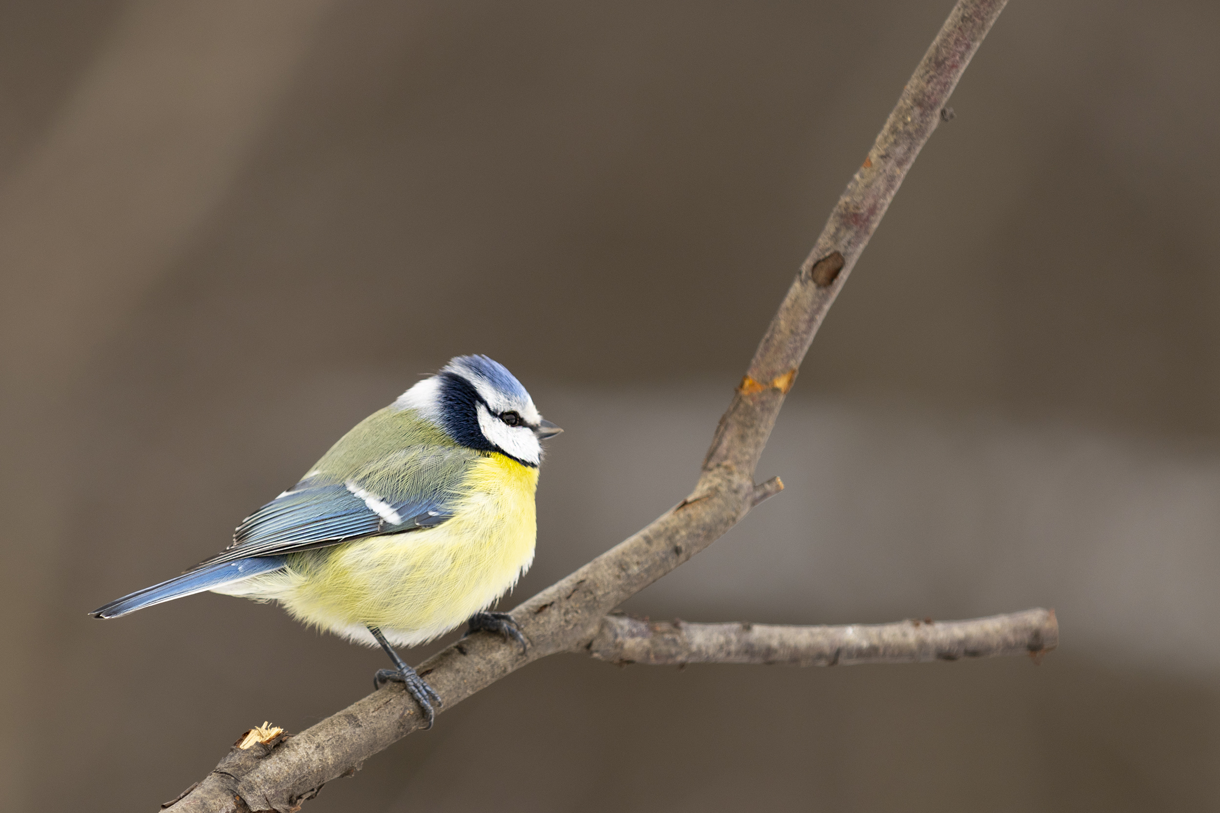 Вы хорошо передали яркость и чёткость лазоревки — контраст с тёмной веткой и мягкий фон подчёркивают её окрас, акцент на птице удачный.