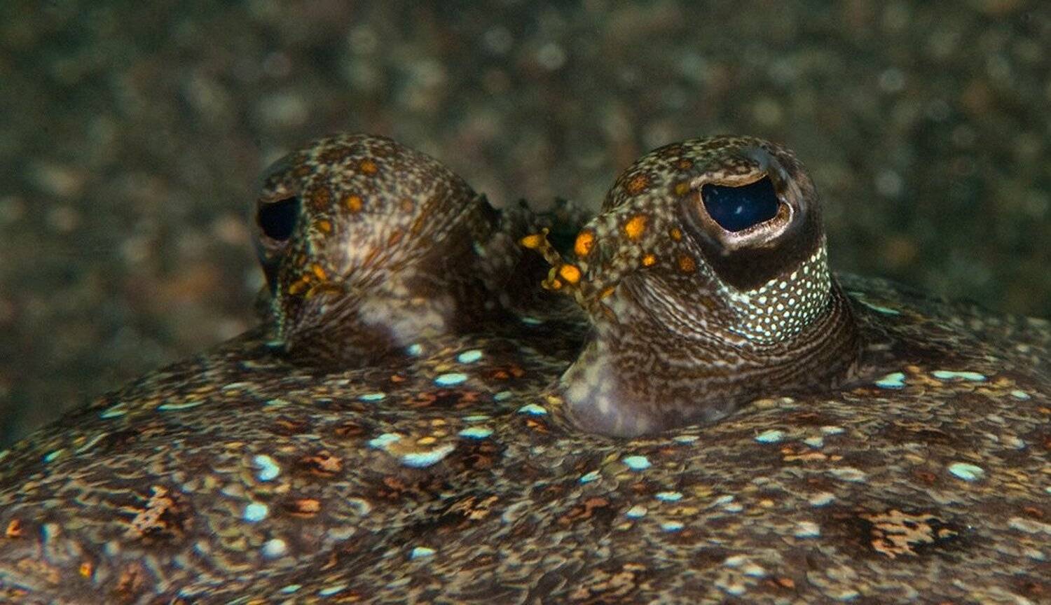 Они обычно в песок зарываются. Одни глаза торчат. Глаза смотри