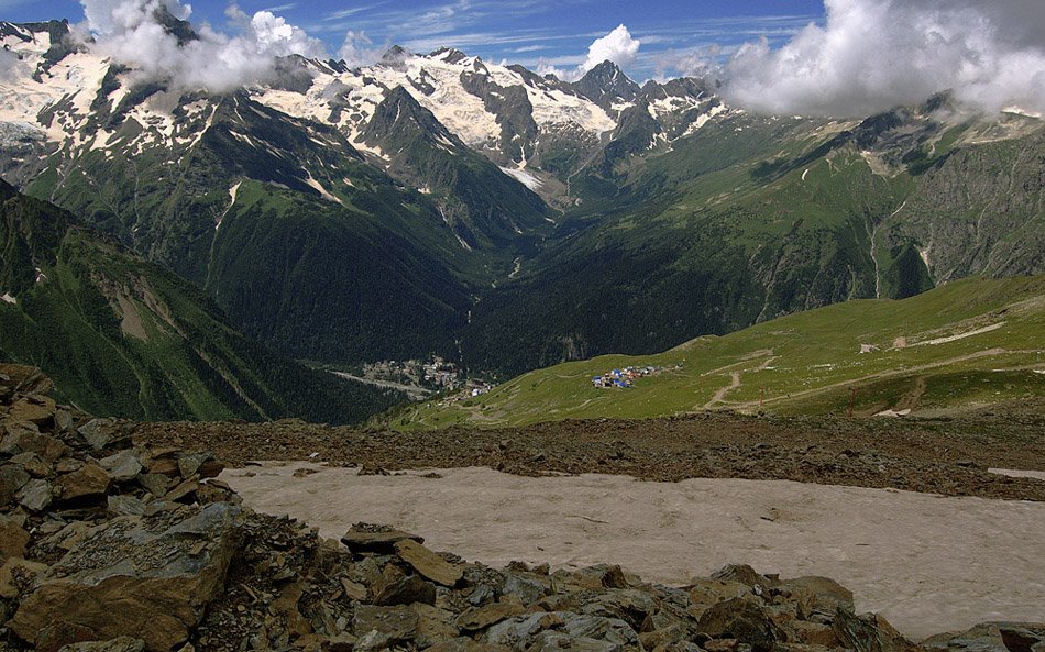 Домбай - один из самых популярных горных курортов Кавказа, находящийся на высоте 1620-1650 м, при слиянии рек Аманауз, Домбай-Ульген и Алибек. Поднимаясь по склону горы Мусса-Ачитара на канатной дороге, можно наблюдать величественный вид Большого Кавказского хребта. С высоты более 3000 м можно любоваться редкой по красоте и величине Алибекской долиной, ущельем реки Аманауз, вершинами Добай -Ульген, Бу- Ульген, Джугутурлучат и Пик Ине, Белалакая, Зуб Суфруджу, Сулахат....