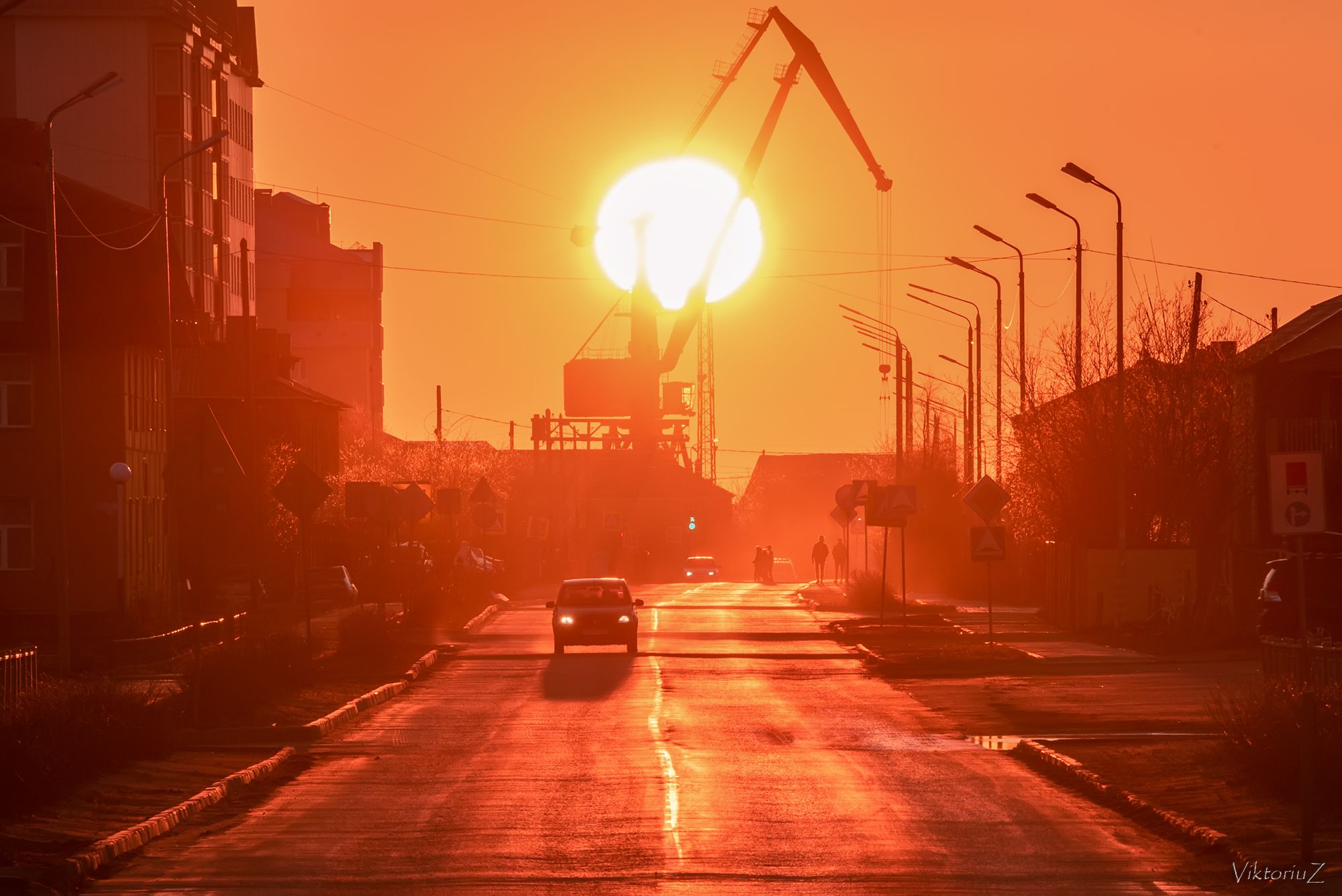 закат, солнце, дорога, кран, Куликов Виктор