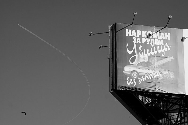 хороший контраст мирной "советской жизни", самолетов в голубом небе, и ужаса нашего времени.