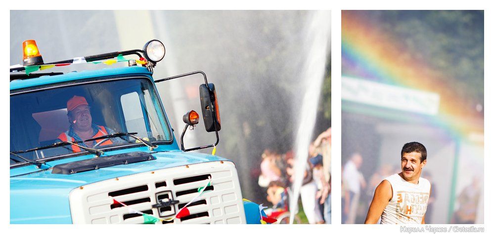 водовоз, радуга, день города, день москвы, зеленоград, вода, поливалка, фонтан, брызги, Кирилл Чернов