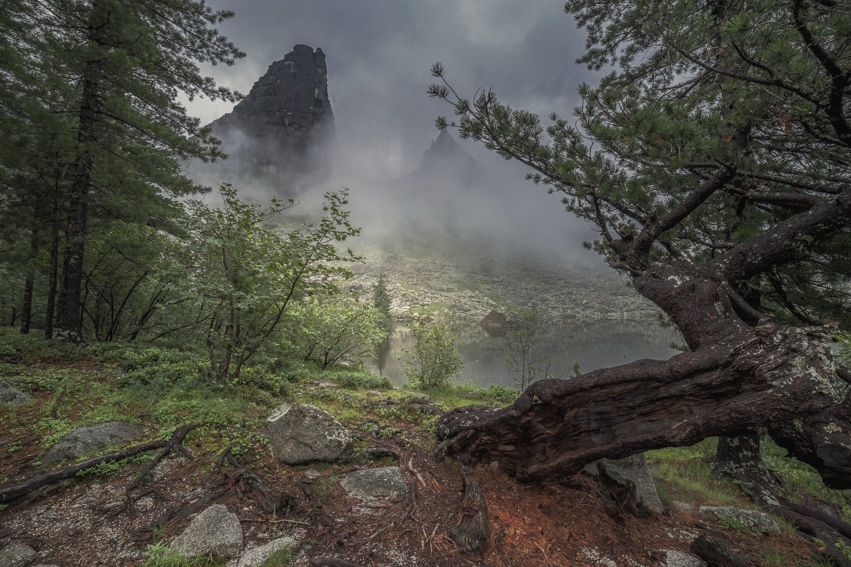 природа, пейзаж, горы, туман, озеро, Дамир Белоколенко