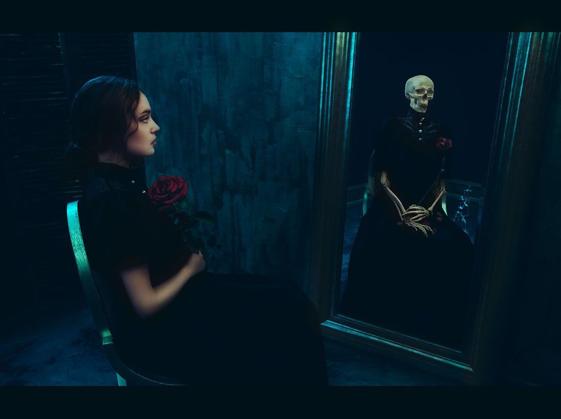 Атмосфера, Девушка, Портрет, Портрет девушки, Психологический портрет, Скелет, Студия, Цветок, Дарина Рябченко