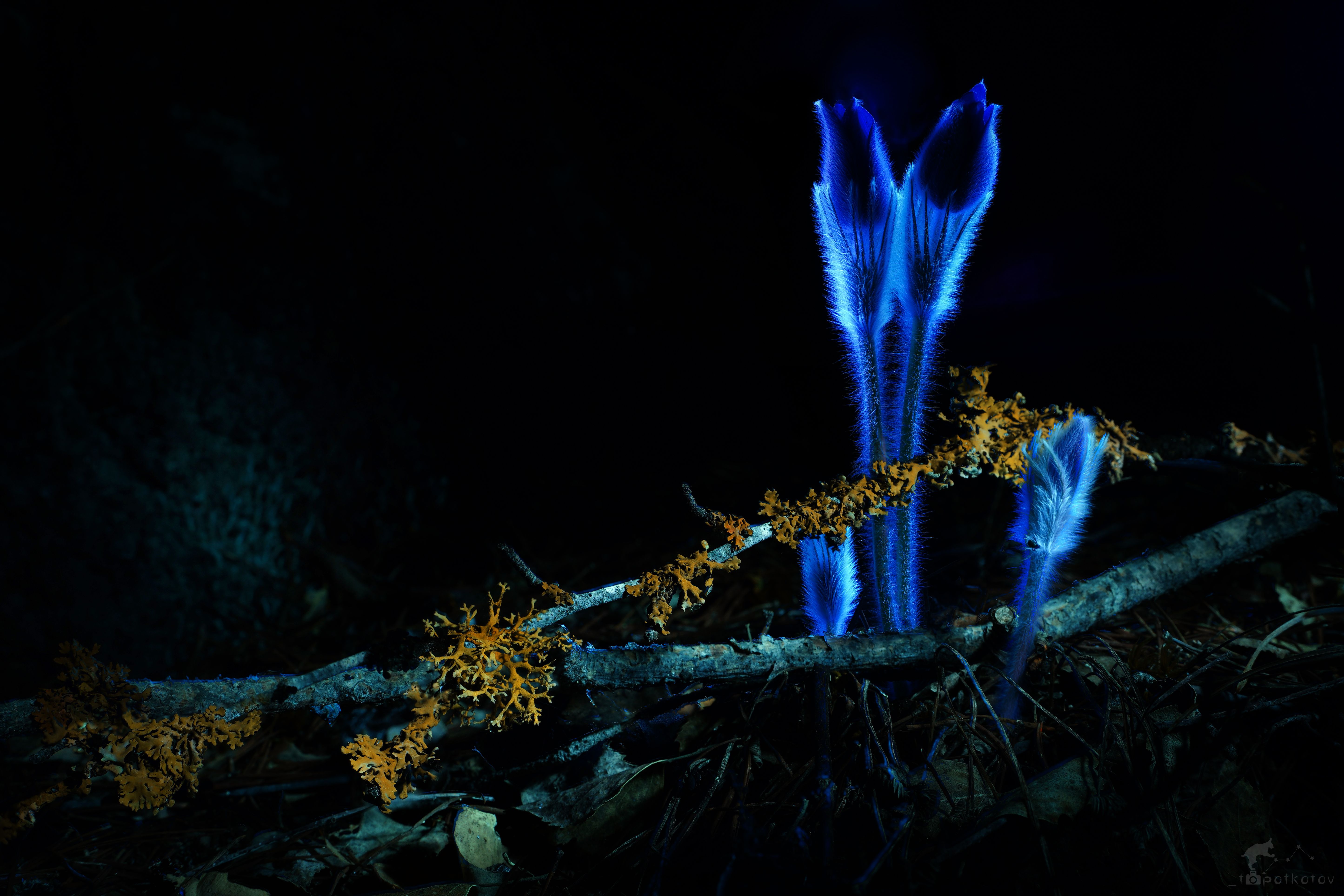 Сон-трава, она же Прострел. Фотографии сделаны на длинной выдержке с подсветкой УФ-фонарём